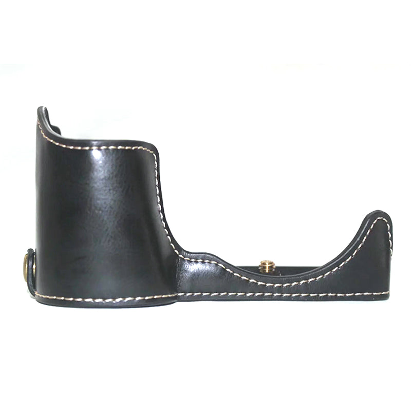 for Sony ZV-E10 Camera Bottom Case Anti-scratch PU Leather Half Protective Cover with Battery Opening Design - Black