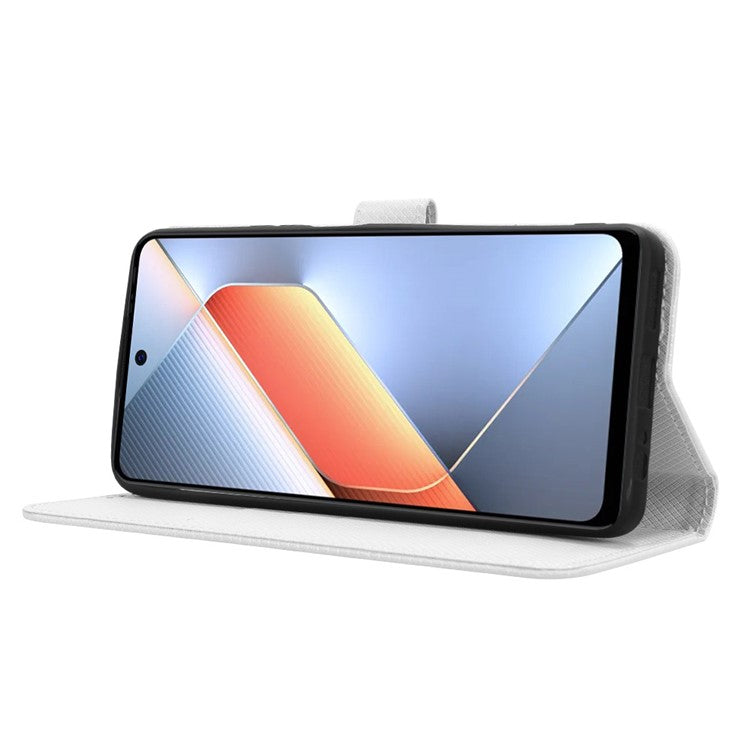 For TECNO Pova 6 Neo Case PU Leather Diamond Texture Protective Phone Cover - White