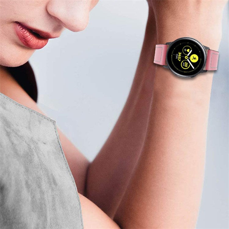 For TicWatch 2/TicWatch E/TicWatch C2 Stainless Steel Buckle Cowhide Leather Soft Wrist Strap Replacement Watchband - Pink