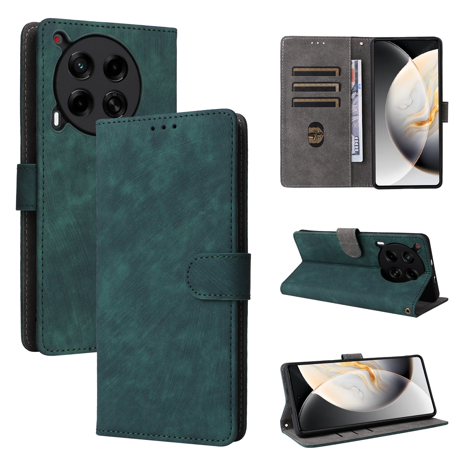 For Transsion Tecno Camon 30 5G CL7 Magnetic Case RFID Blocking Wallet Cover with Wrist Strap - Green