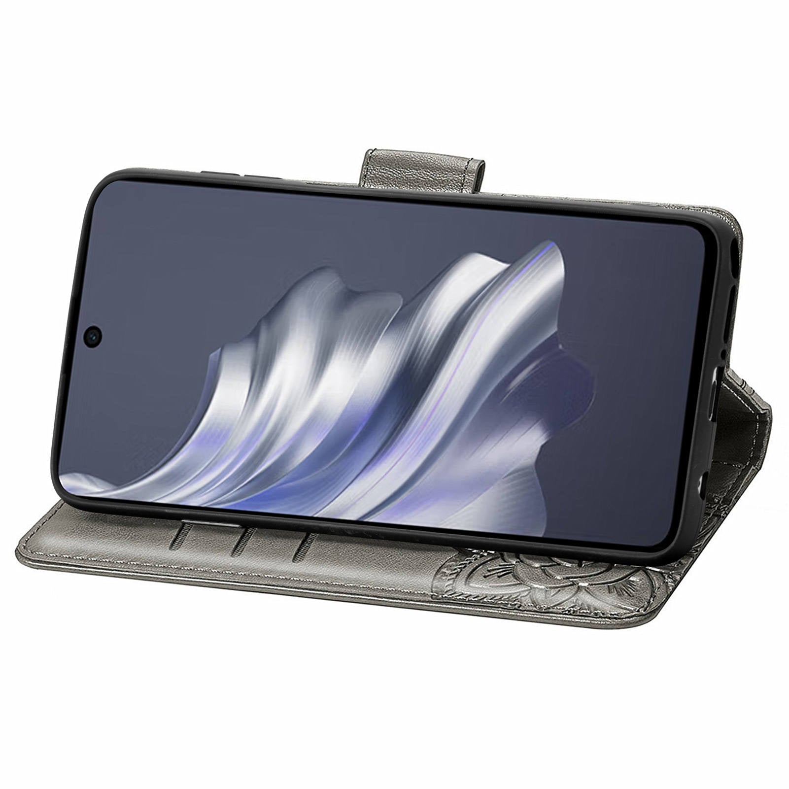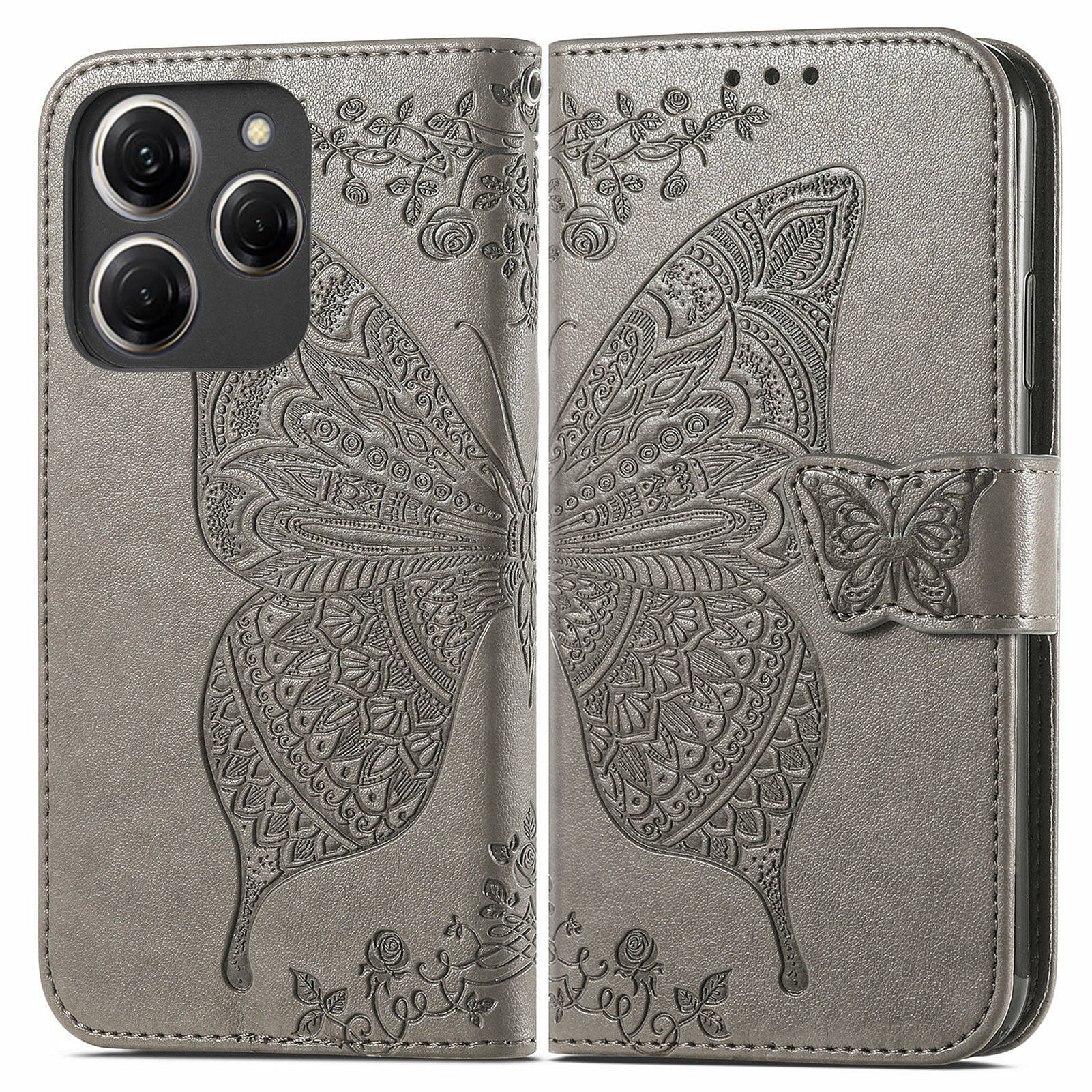 For Transsion Tecno Spark 20 Pro Case Butterfly Pattern Flip Folio PU Leather Phone Cover - Grey