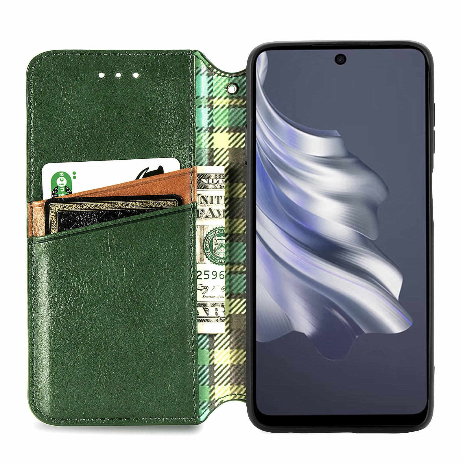 For Transsion Tecno Spark 20 Pro Case Wallet Leather Phone Cover Rhombus Imprinted - Green