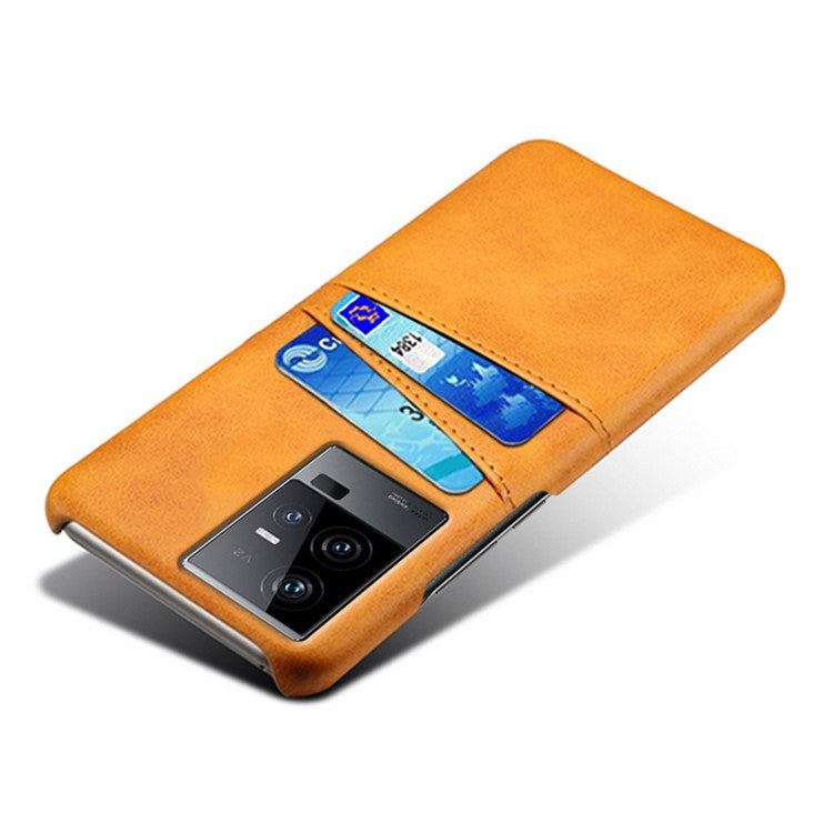 For vivo iQOO 11 5G Dual Card Slots Phone Case Leather Coated PC Phone Cover - Orange