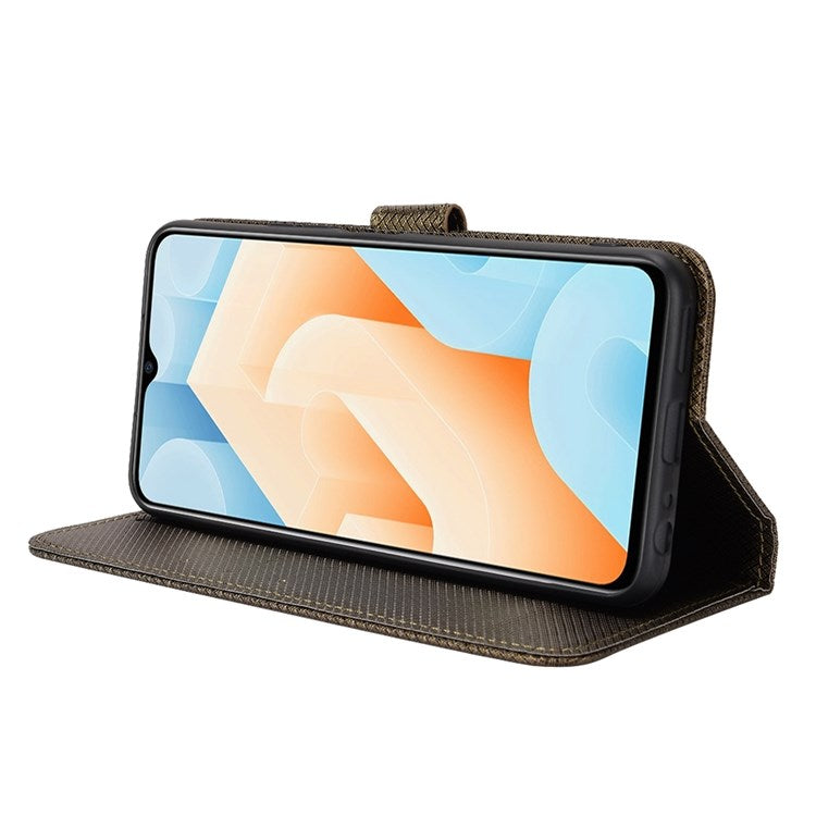 For vivo iQOO U5 Anti-fall Protection PU Leather Cover Diamond Texture Wallet Stand Magnetic Mobile Phone Case - Brown