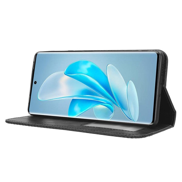 For vivo S17e 5G Retro Stand Wallet Mobile Phone Cover PU Leather Protector Case - Black