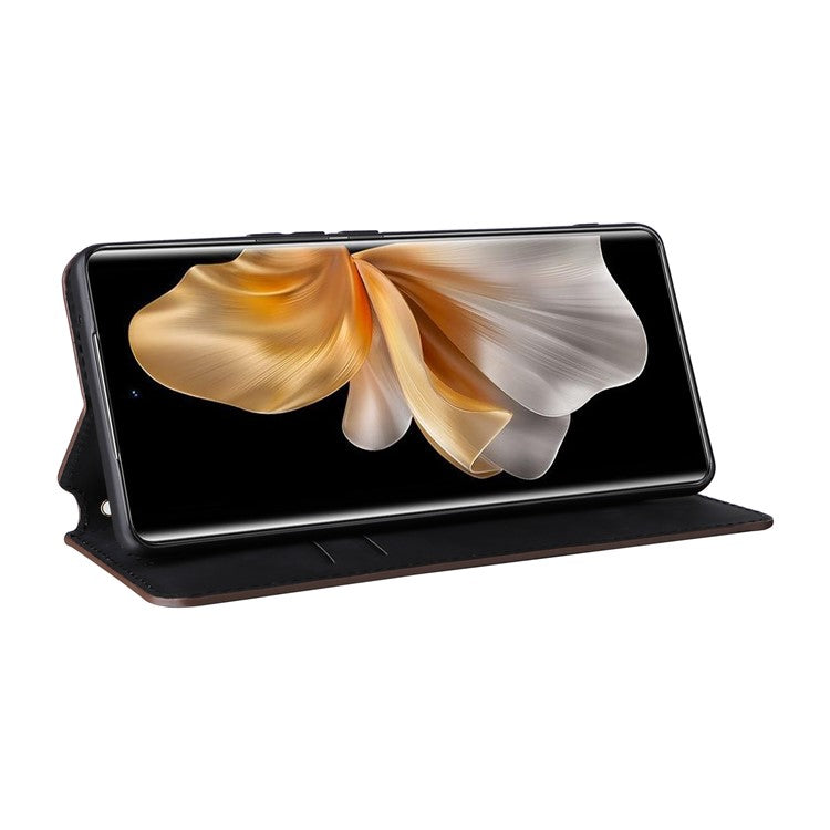 For vivo S18 Pro 5G / V30 Pro 5G Magnetic Case 3D Rhombus Imprinted Leather Wallet Cover - Brown