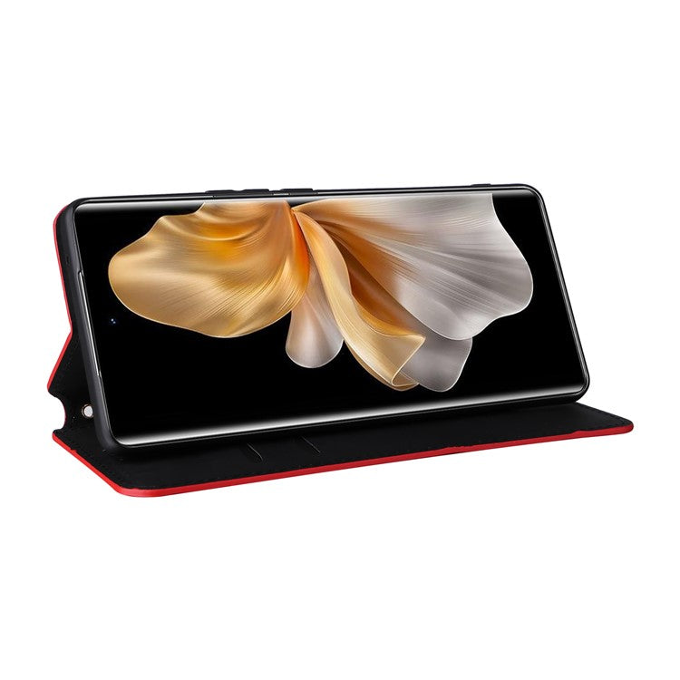 For vivo S18 Pro 5G / V30 Pro 5G Magnetic Case 3D Rhombus Imprinted Leather Wallet Cover - Red