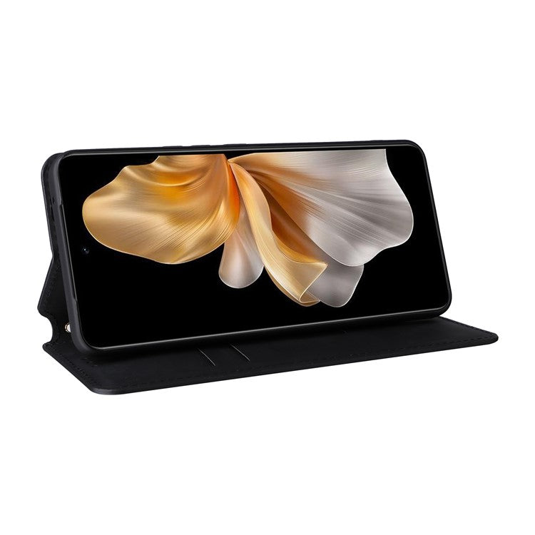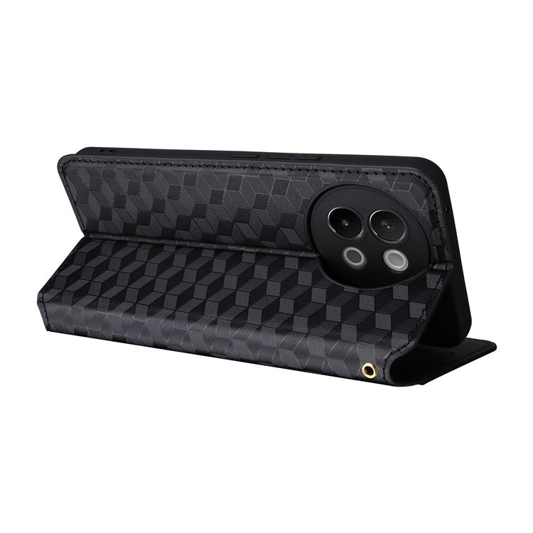 For vivo S18e 5G Leather Case Magnetic Closure Phone Cover Rhombus Pattern - Black