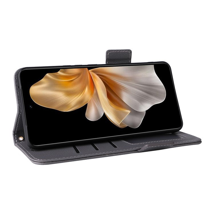 For vivo S18e 5G Protective Wallet Case PU Leather Phone Cover - Grey