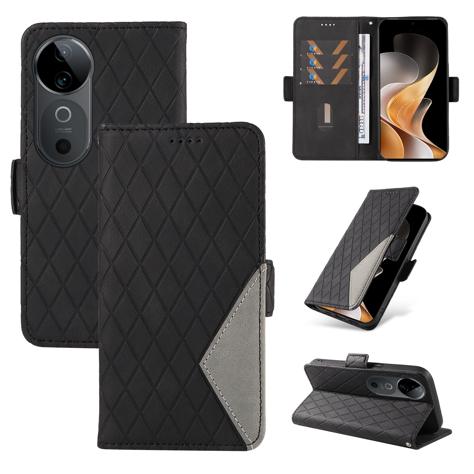 For vivo S19 5G / V40 5G Case Rhombus Splicing Leather Phone Cover - Black