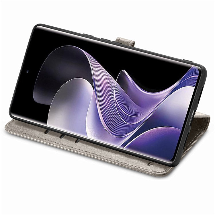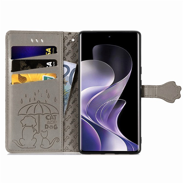 For vivo T3 Ultra 5G Case Leather Wallet Flip Phone Cover Cute Cat Dog Pattern - Grey