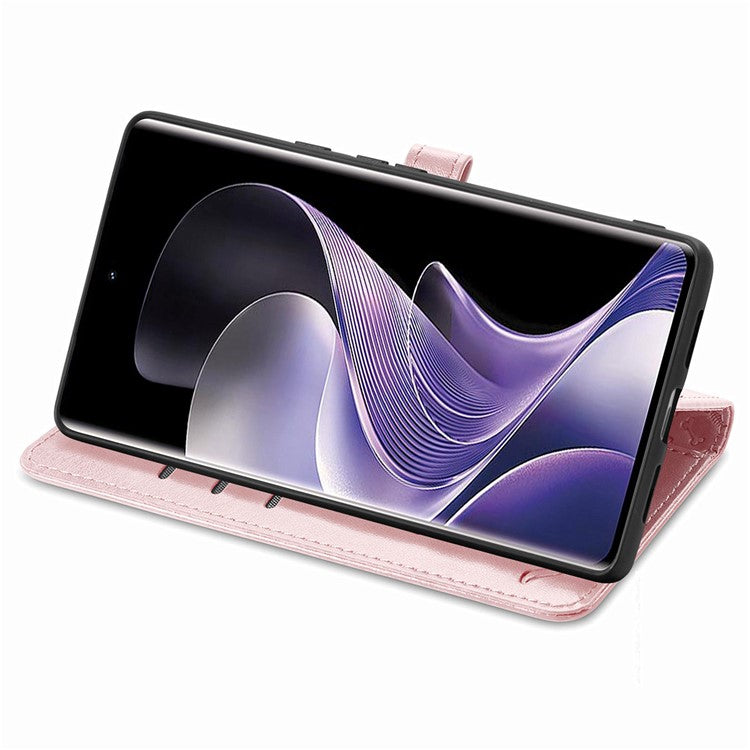 For vivo T3 Ultra 5G Case Leather Wallet Flip Phone Cover Cute Cat Dog Pattern - Rose Gold