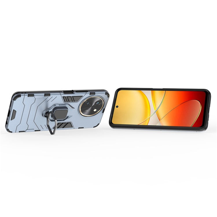 For vivo T3x Shockproof Case Ring Holder Kickstand PC+TPU Phone Cover - Blue