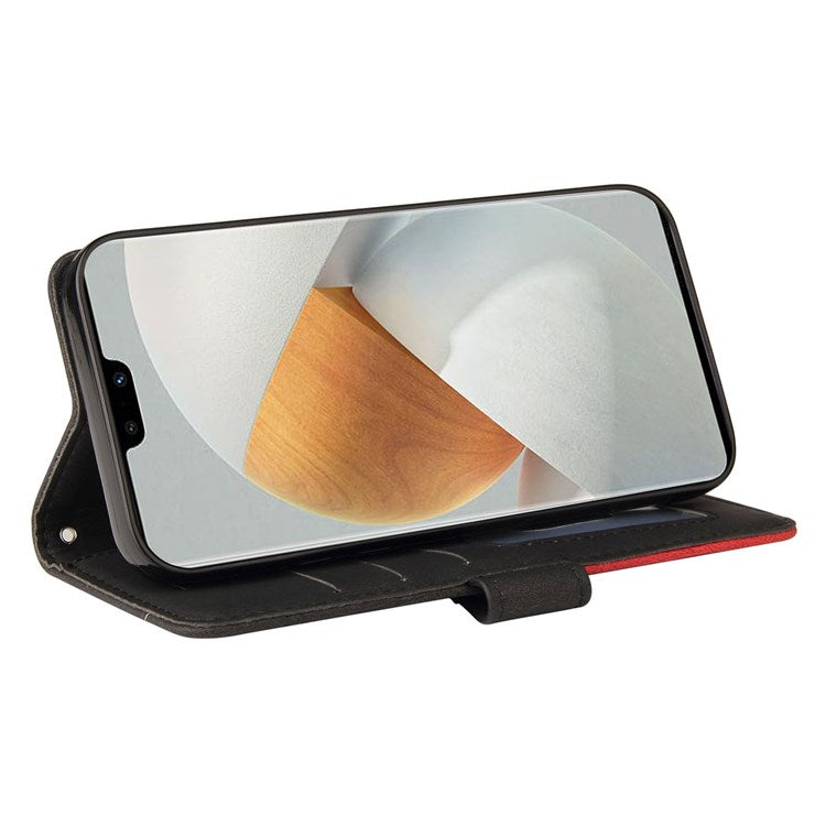 For vivo V23 5G Dual-color Splicing PU Leather Anti-drop Anti-scratch Wallet Function Mobile Phone Case Stand Shell with Strap - Black