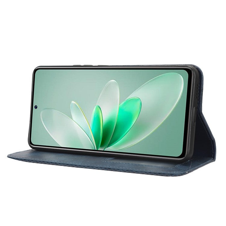 For vivo V27e 5G / S16e 5G Retro Phone Case PU Leather Stand Wallet Magnetic Flip Phone Cover - Blue
