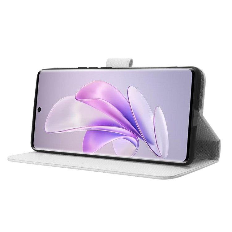 For vivo V29 5G / S17 5G / S17 Pro 5G / S17t 5G PU Leather Phone Case Stand Wallet Anti-Dust Phone Shell Diamond Texture Cover - White