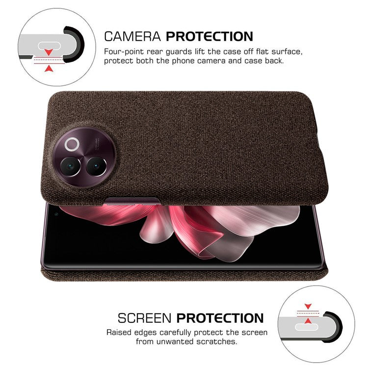 For vivo V30e 5G Case Anti-Drop Cloth Covered Hard PC Phone Cases - Brown