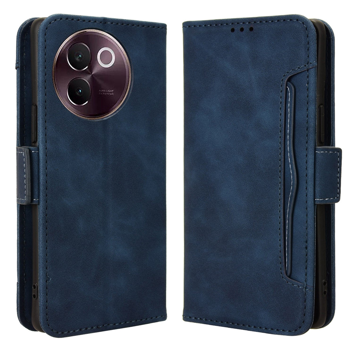 For vivo V30e 5G / V40 Lite 5G Case PU Leather Flip Folio Phone Cover with Multiple Card Holders - Blue