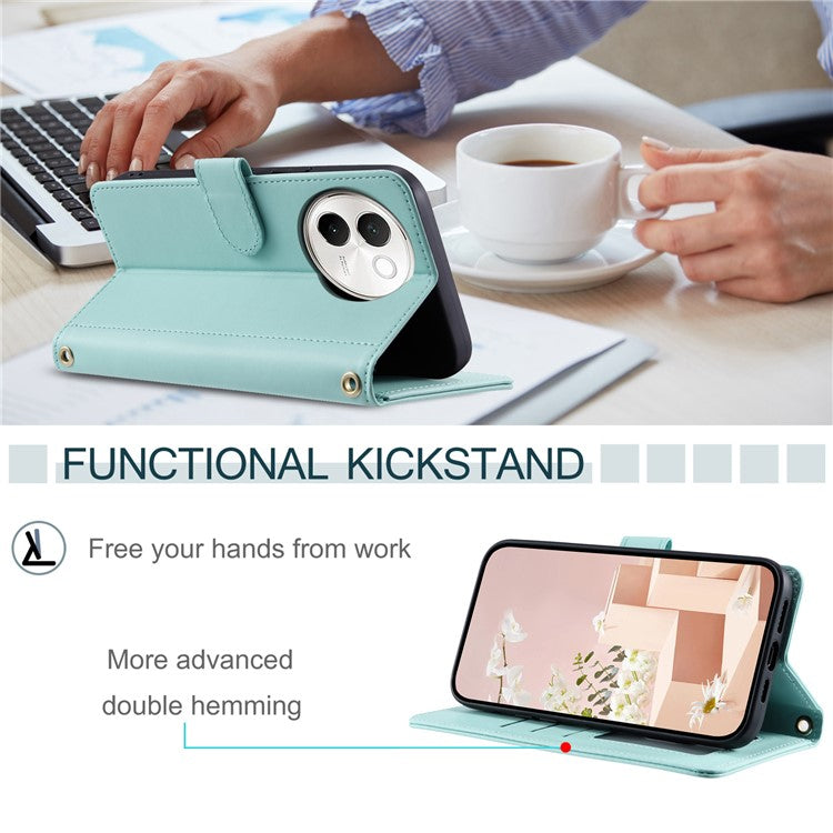 For vivo V40 Lite 5G / V30e 5G Wallet Case Rhombus Grid PU Leather Phone Cover - Mint Green