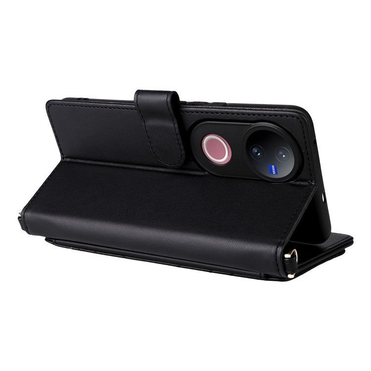 For vivo V50 5G Case with Shoulder Strap Wallet Leather Phone Cover - Black