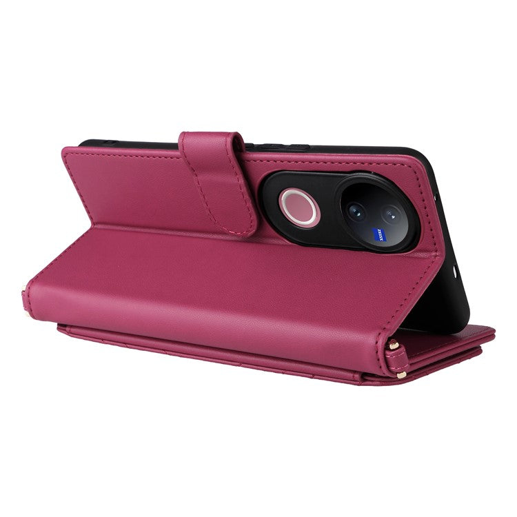 For vivo V50 5G Case with Shoulder Strap Wallet Leather Phone Cover - Rose