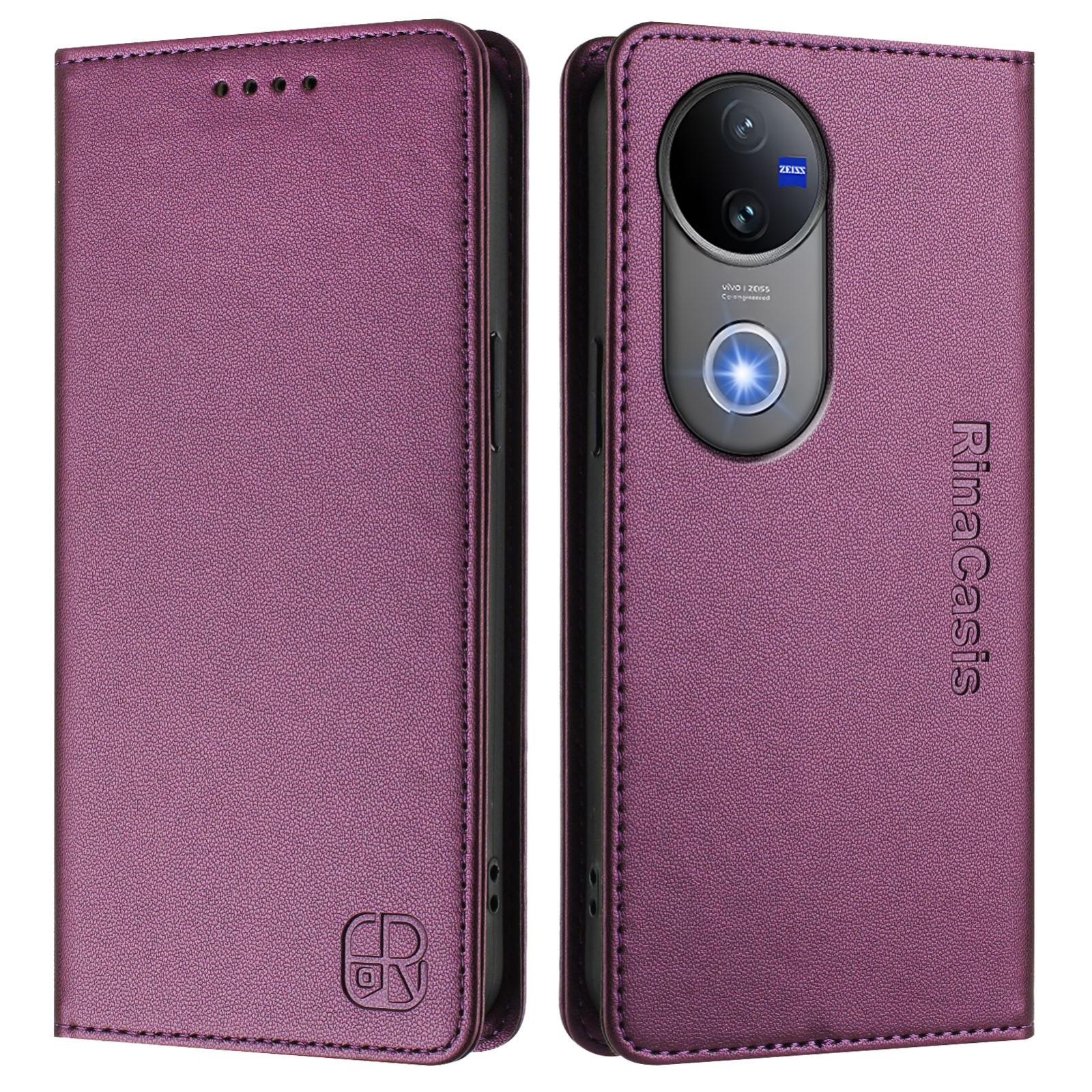 For vivo V50 5G Global RC01 Dual-Folded Magnetic Suction RFID Leather Phone Case(Violet)