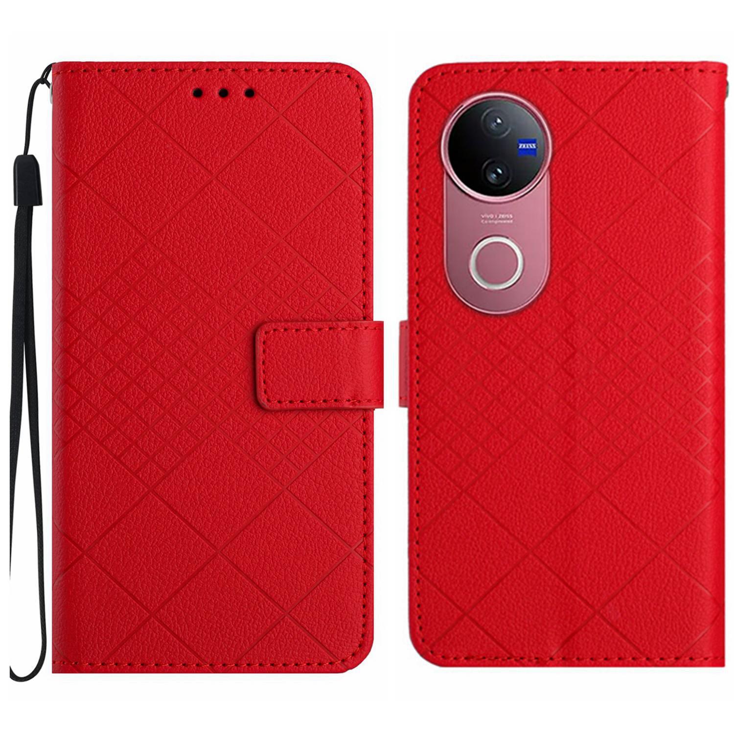 For vivo V50 5G Global Rhombic Grid Texture Leather Phone Case(Red)