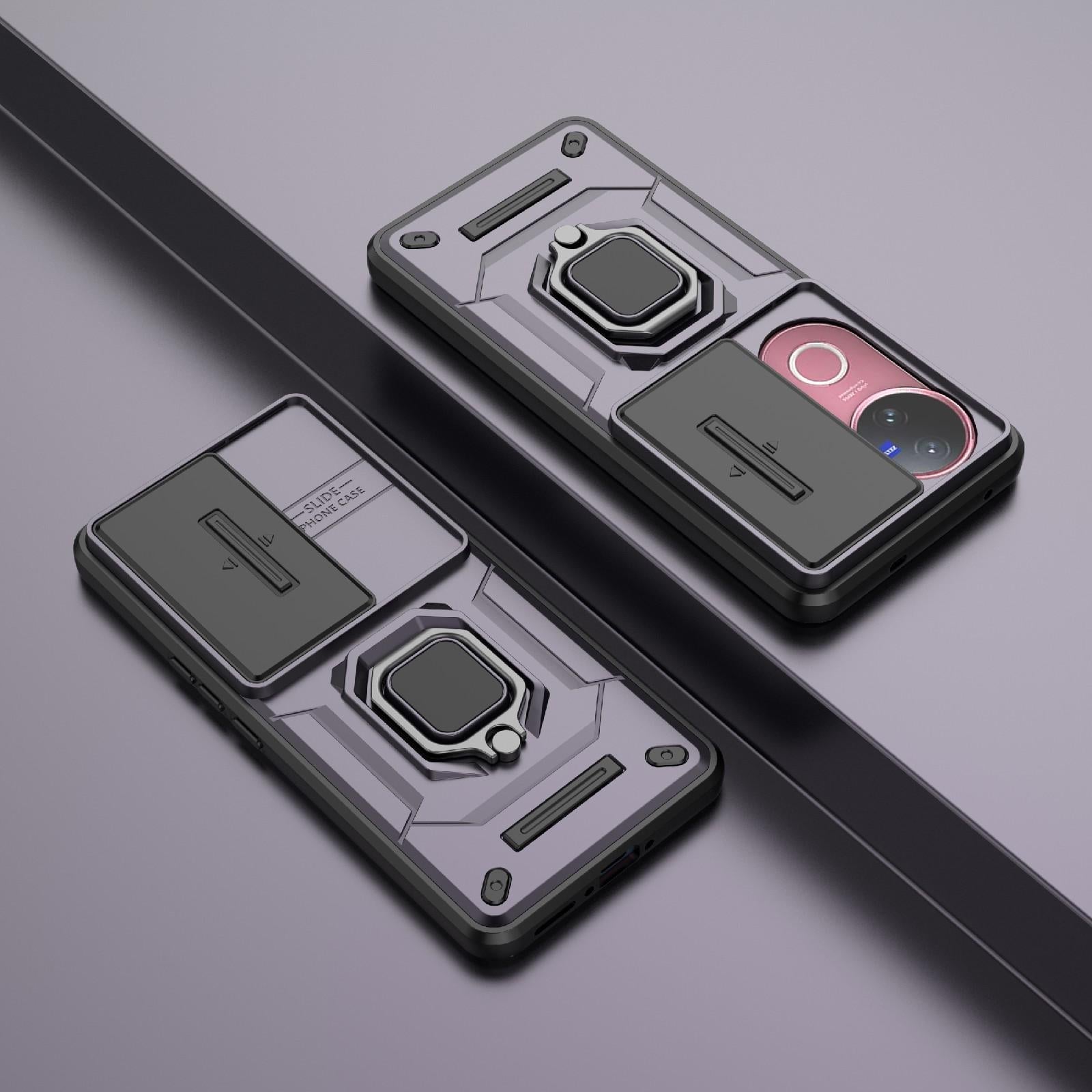 For vivo V50 5G Global Sliding Camshield TPU + PC Shockproof Phone Case with Holder(Purple)