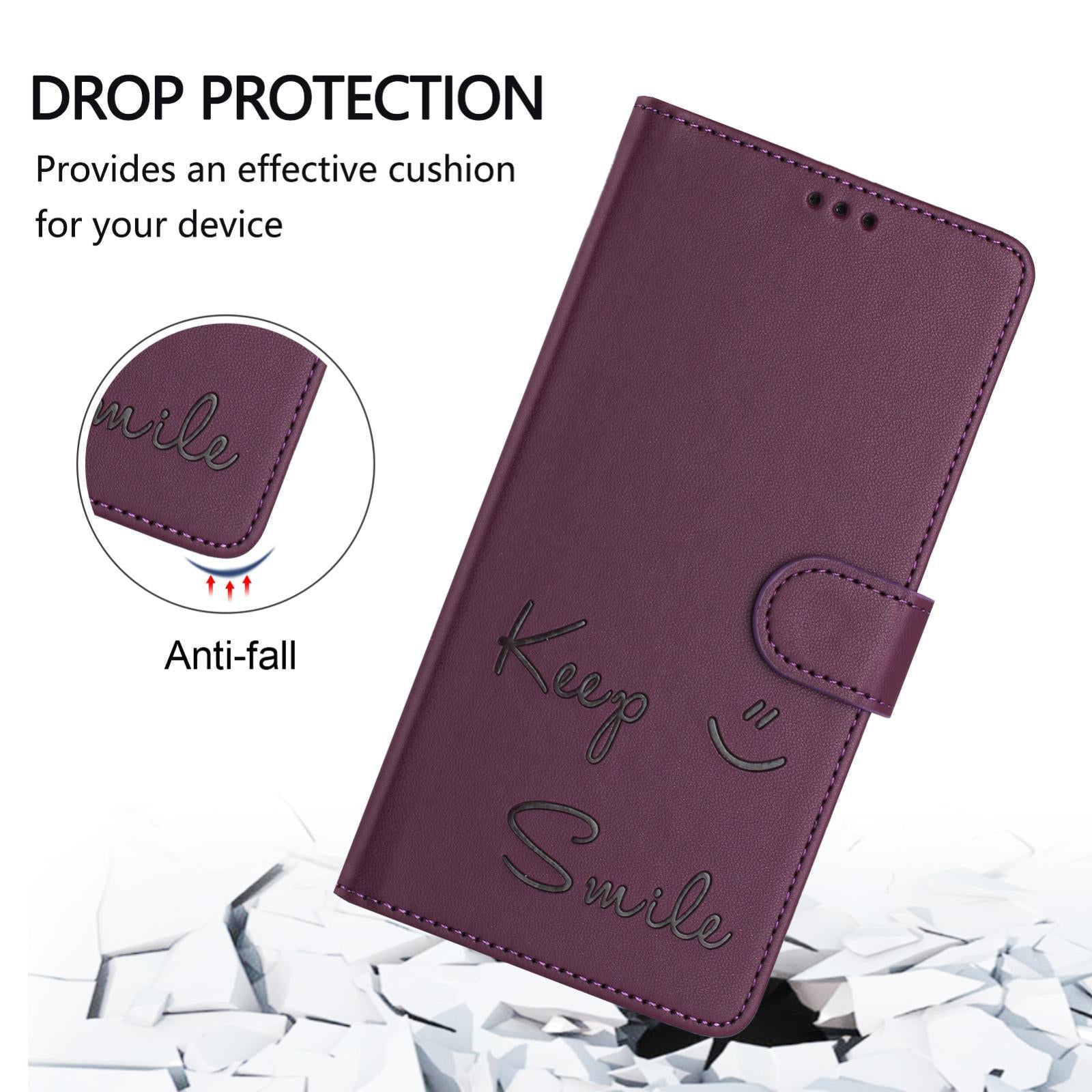 For vivo V50 5G Global Smile Embossing RFID Leather Phone Case(Violet)