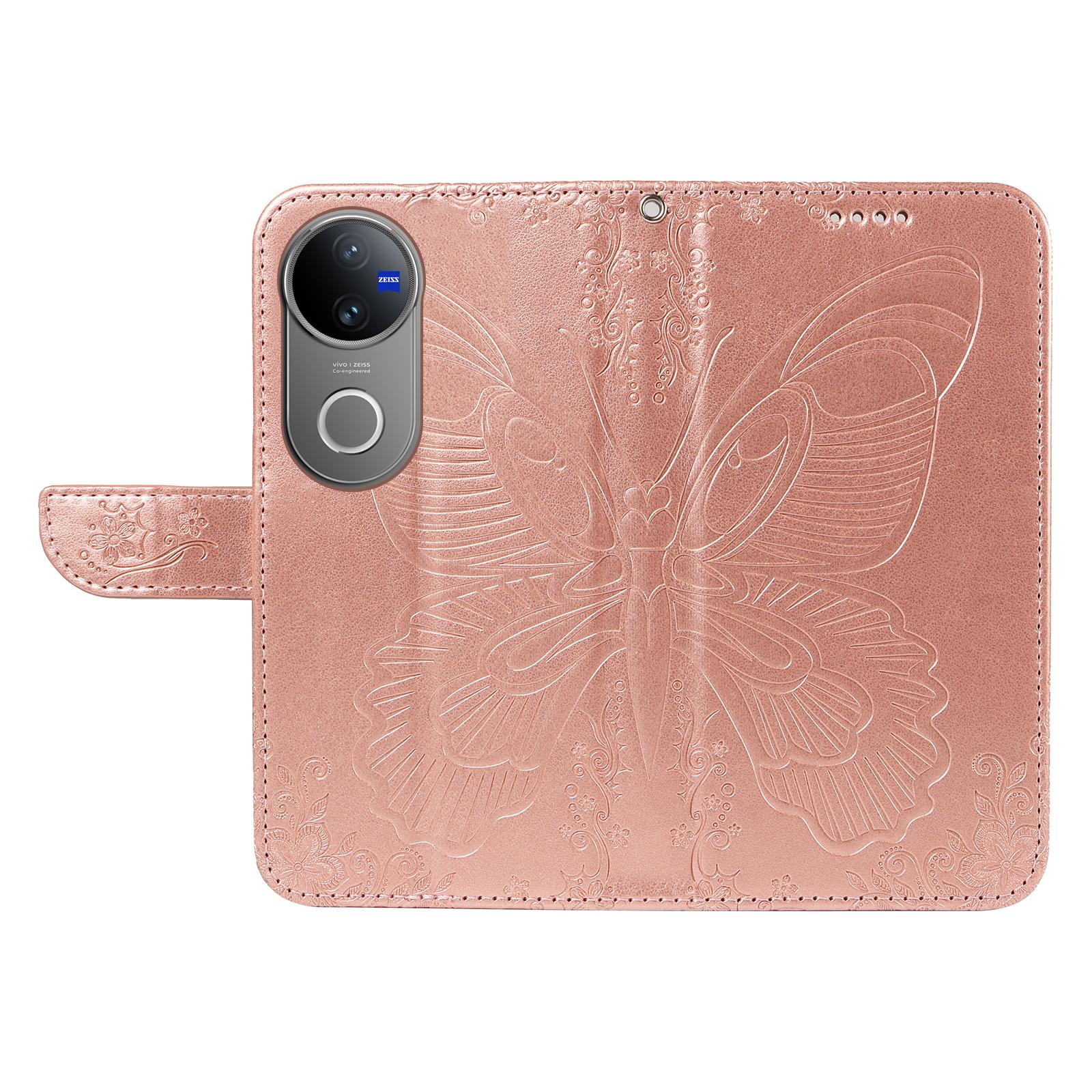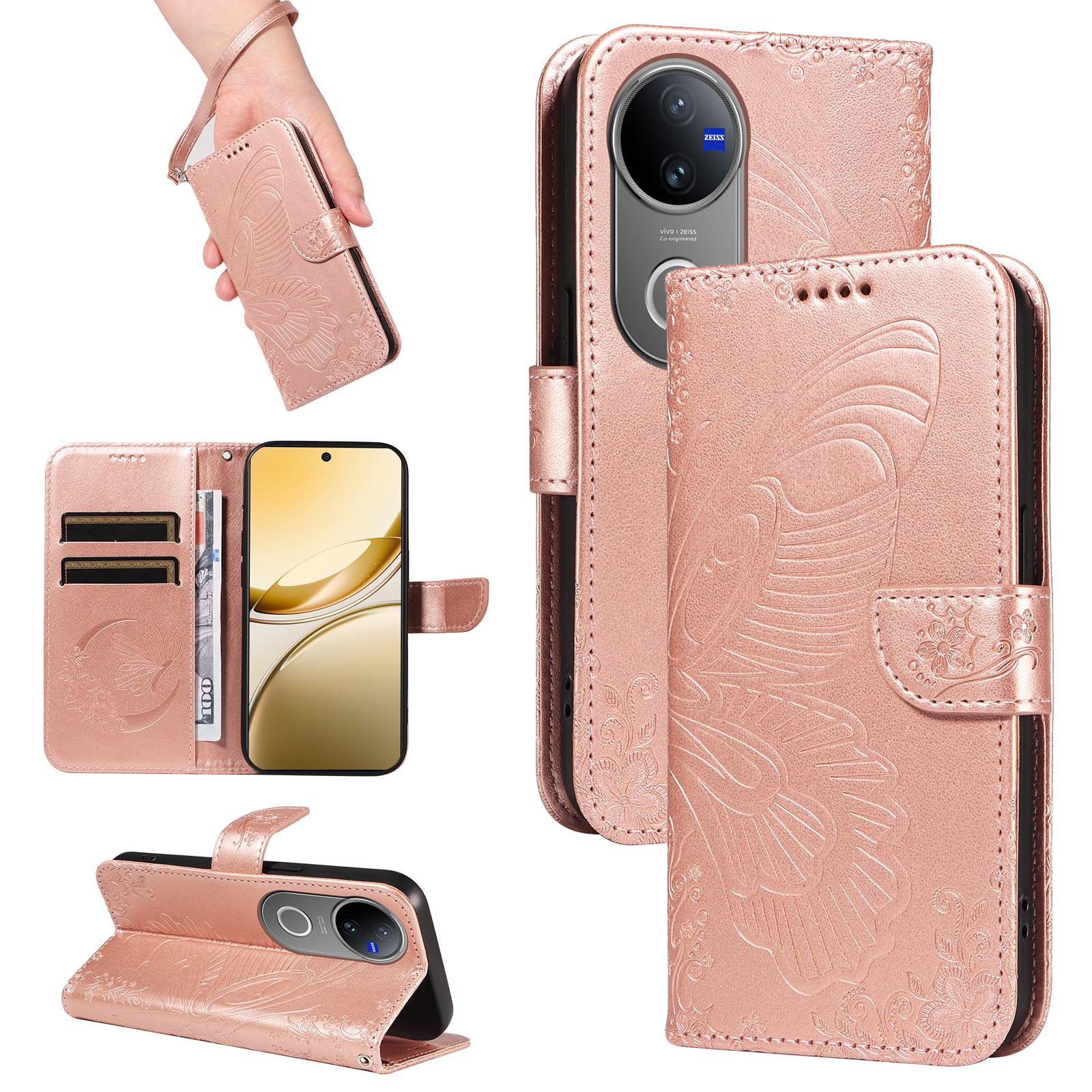 For vivo V50 5G Global Swallowtail Butterfly Embossed Leather Phone Case(Rose Gold)