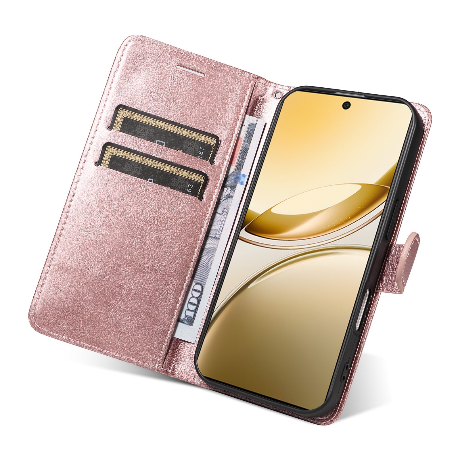 For vivo V50 5G Leather Wallet Case with Strap Solid Color Phone Stand Cover - Rose Gold