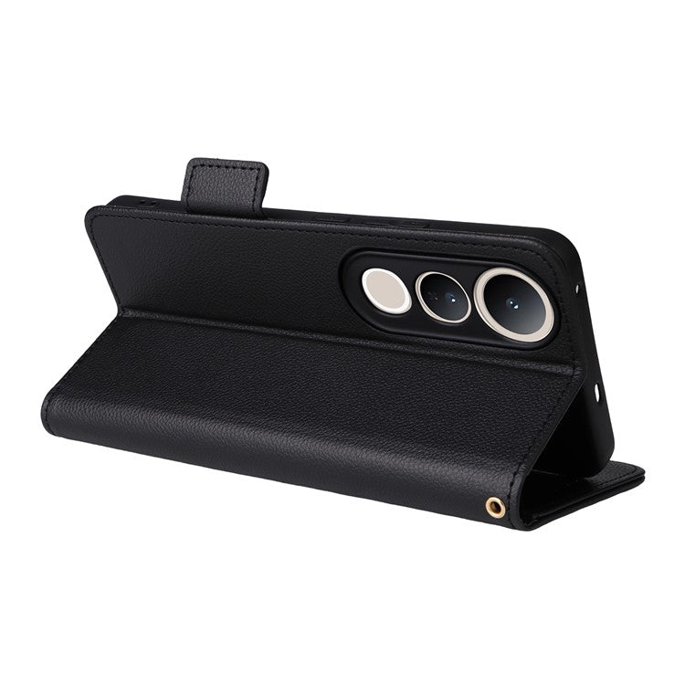 For vivo V50 Lite 4G / 5G Case Wallet Flip Litchi Texture PU Leather Phone Cover - Black