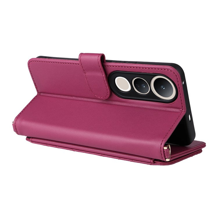 For vivo V50 Lite 4G / 5G Case with Shoulder Strap Wallet Leather Phone Cover - Rose