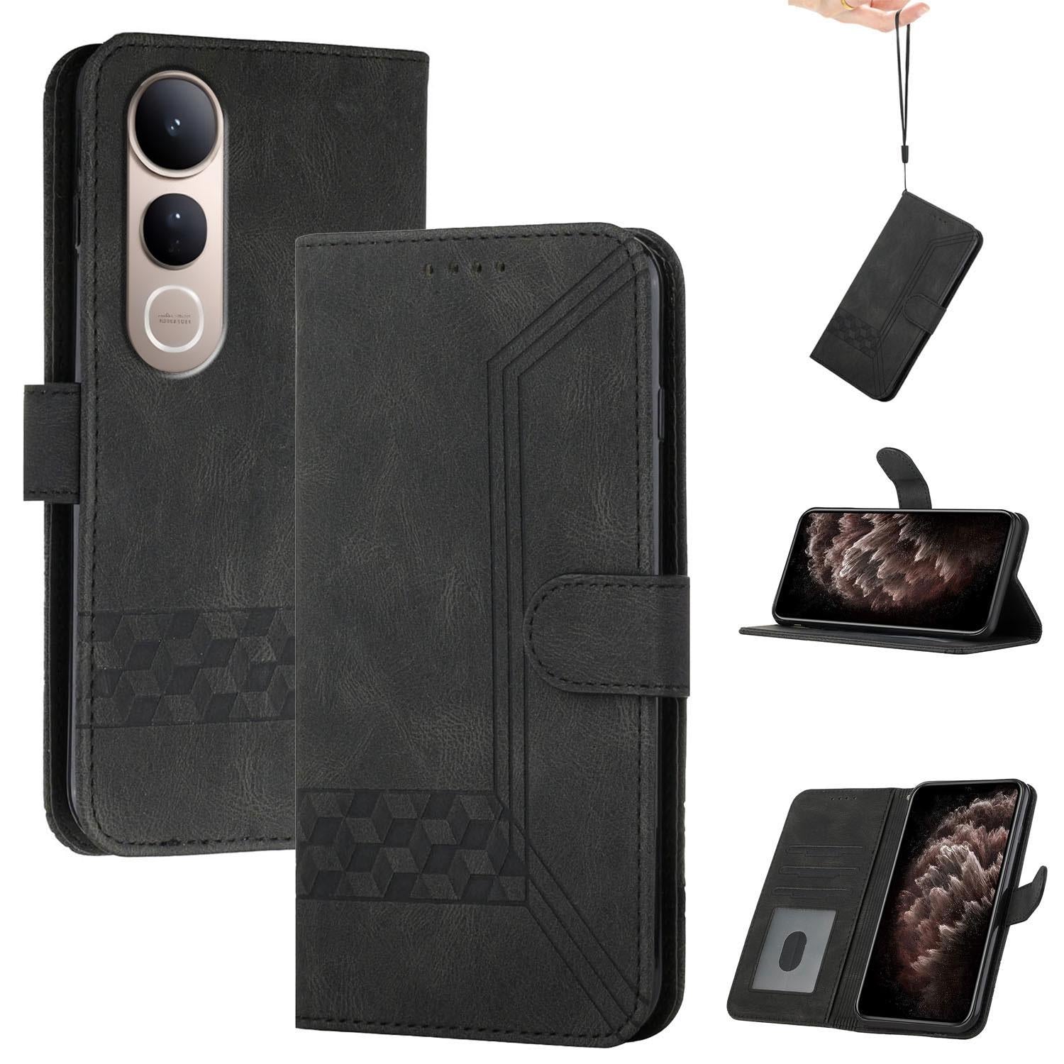 For vivo V50 Lite 4G / 5G Cubic Skin Feel Flip Leather Phone Case(Black)