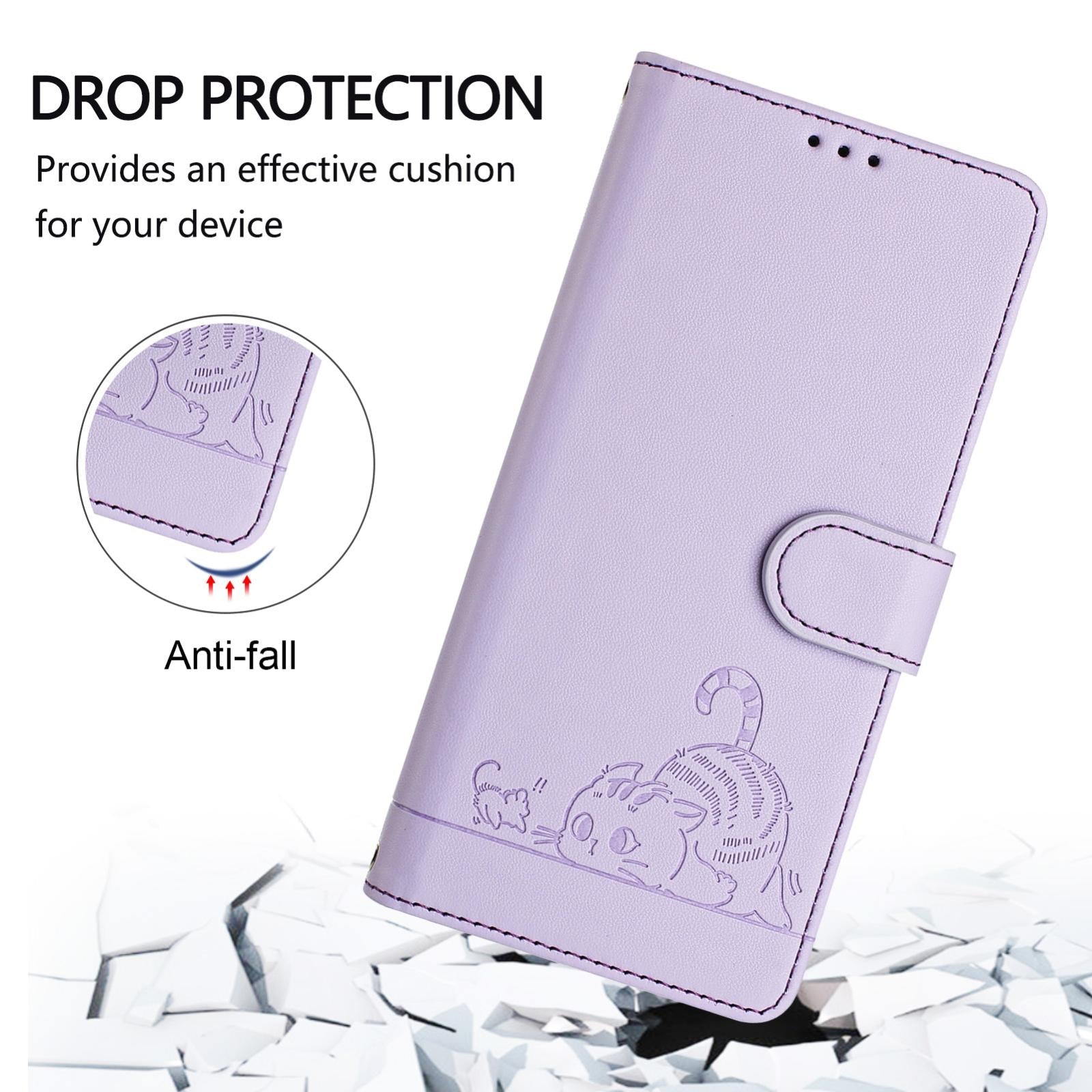 For vivo V50 Lite 5G Cat Rat Embossed Pattern RFID Leather Phone Case with Lanyard(Purple)