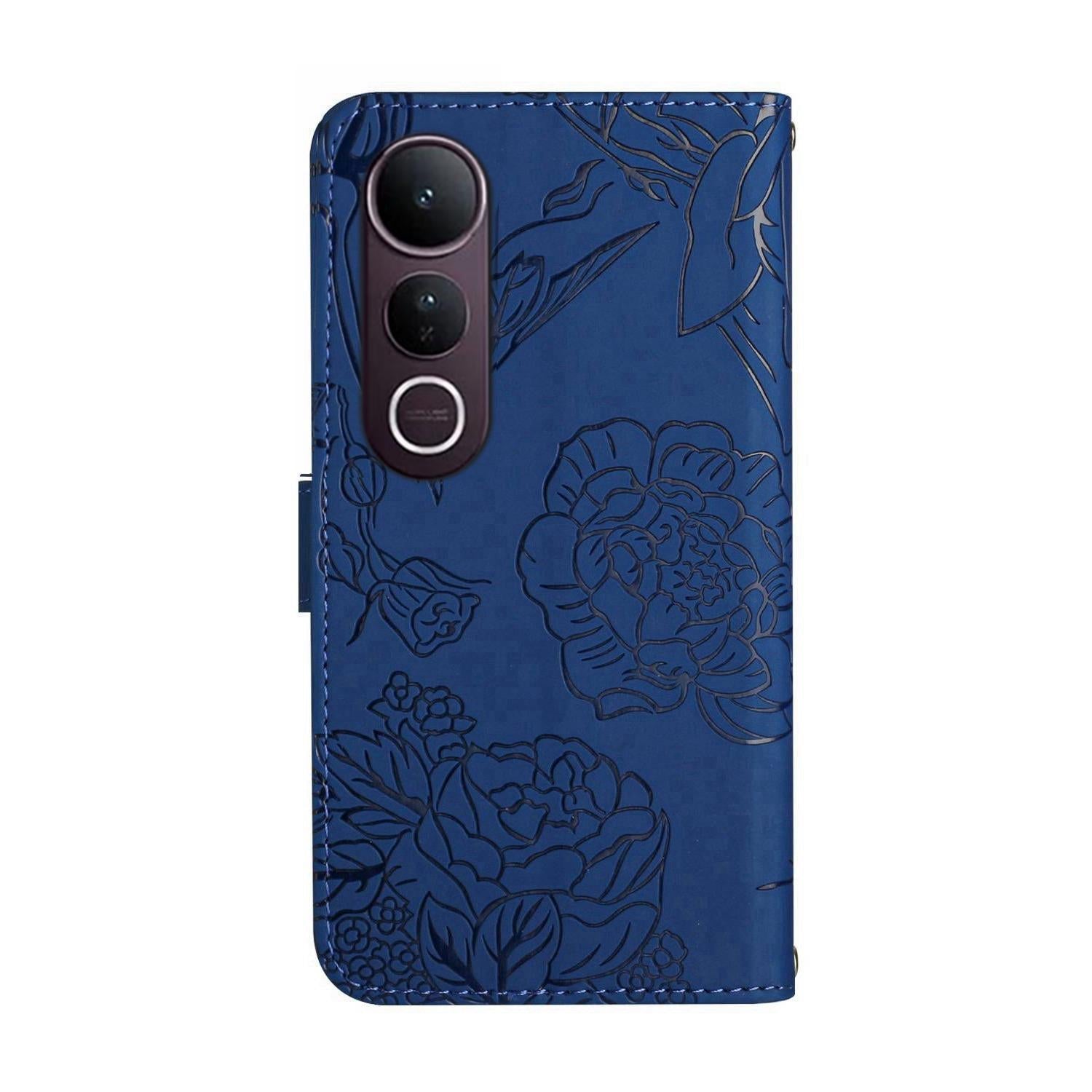 For vivo V50 Lite 5G HT03 Skin Feel Butterfly Embossed Flip Leather Phone Case(Blue)