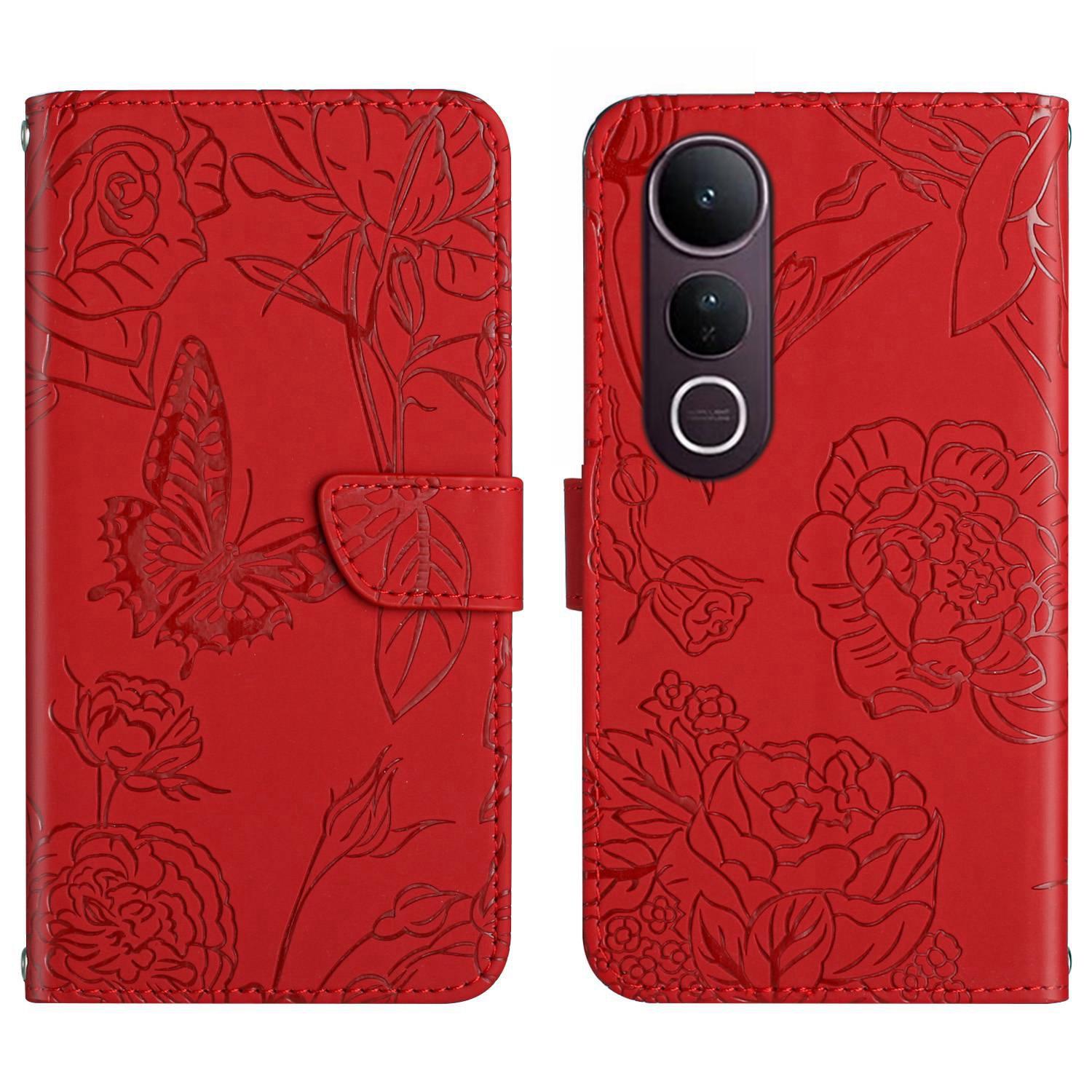 For vivo V50 Lite 5G HT03 Skin Feel Butterfly Embossed Flip Leather Phone Case(Red)