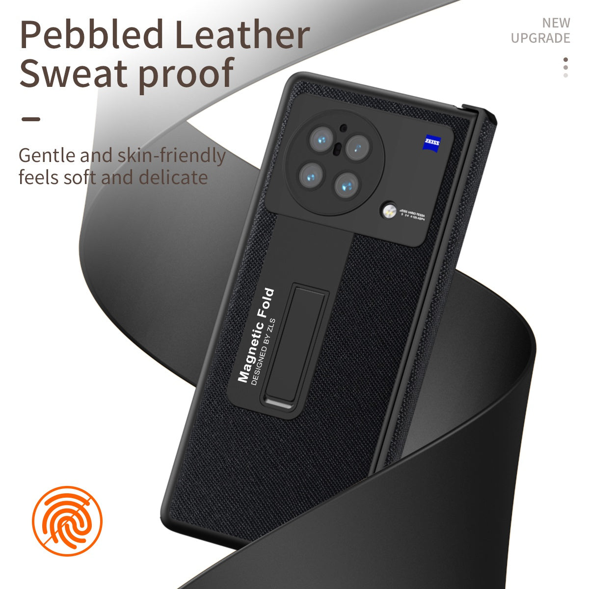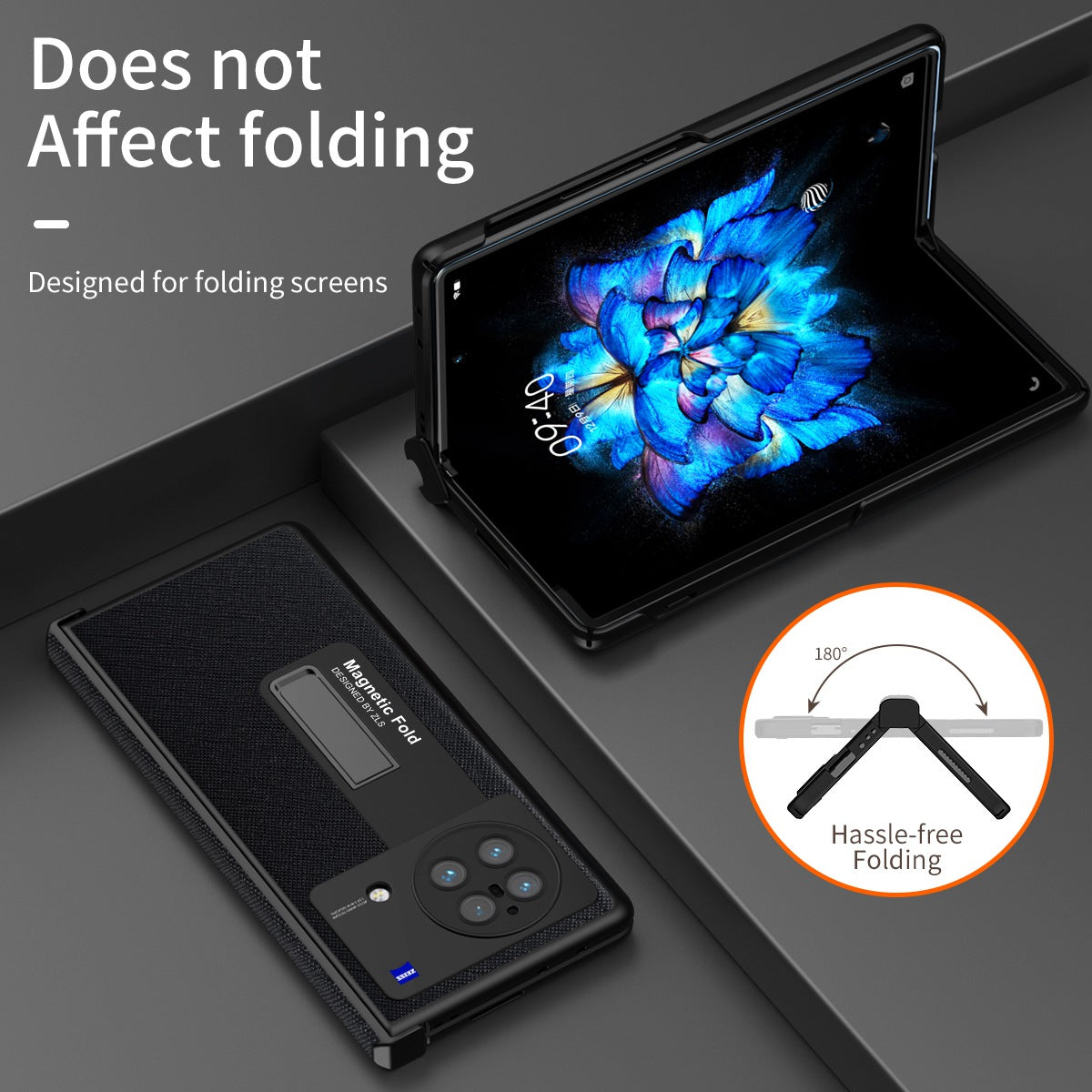 For vivo X Fold Shockproof Phone Case PU Leather + Hard PC Protective Shell Kickstand Case with Stylus - Black