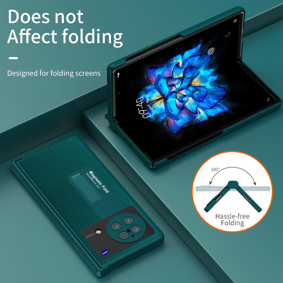 For vivo X Fold Shockproof Phone Case PU Leather + Hard PC Protective Shell Kickstand Case with Stylus - Green