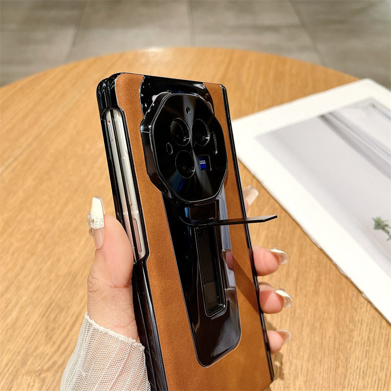 For vivo X Fold3 Case PU Leather+PC Shockproof Phone Cover with PET Film - Brown