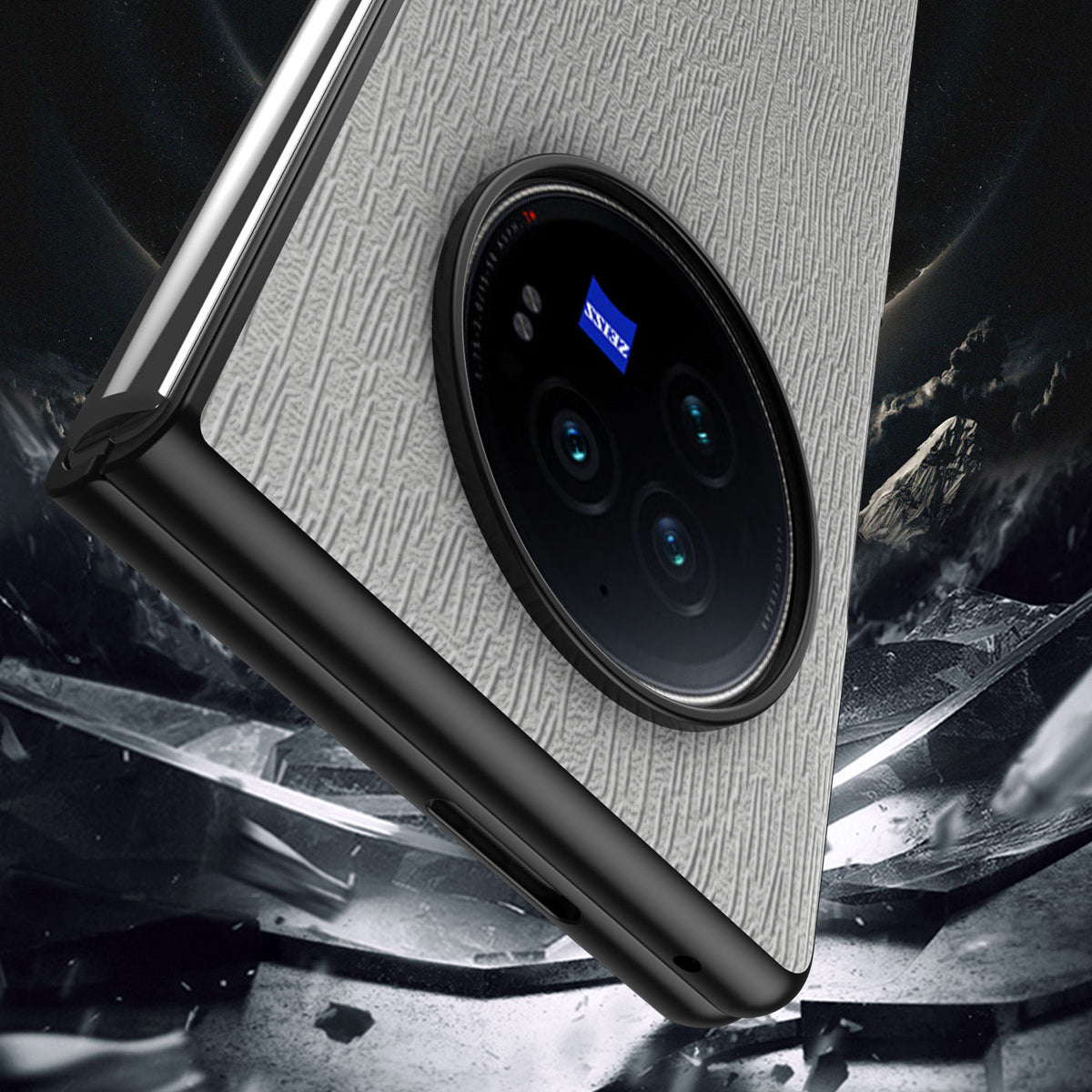 For vivo X Fold3 Case PU Leather+PC+TPU Tree Pattern Slim Protective Phone Cover - Black