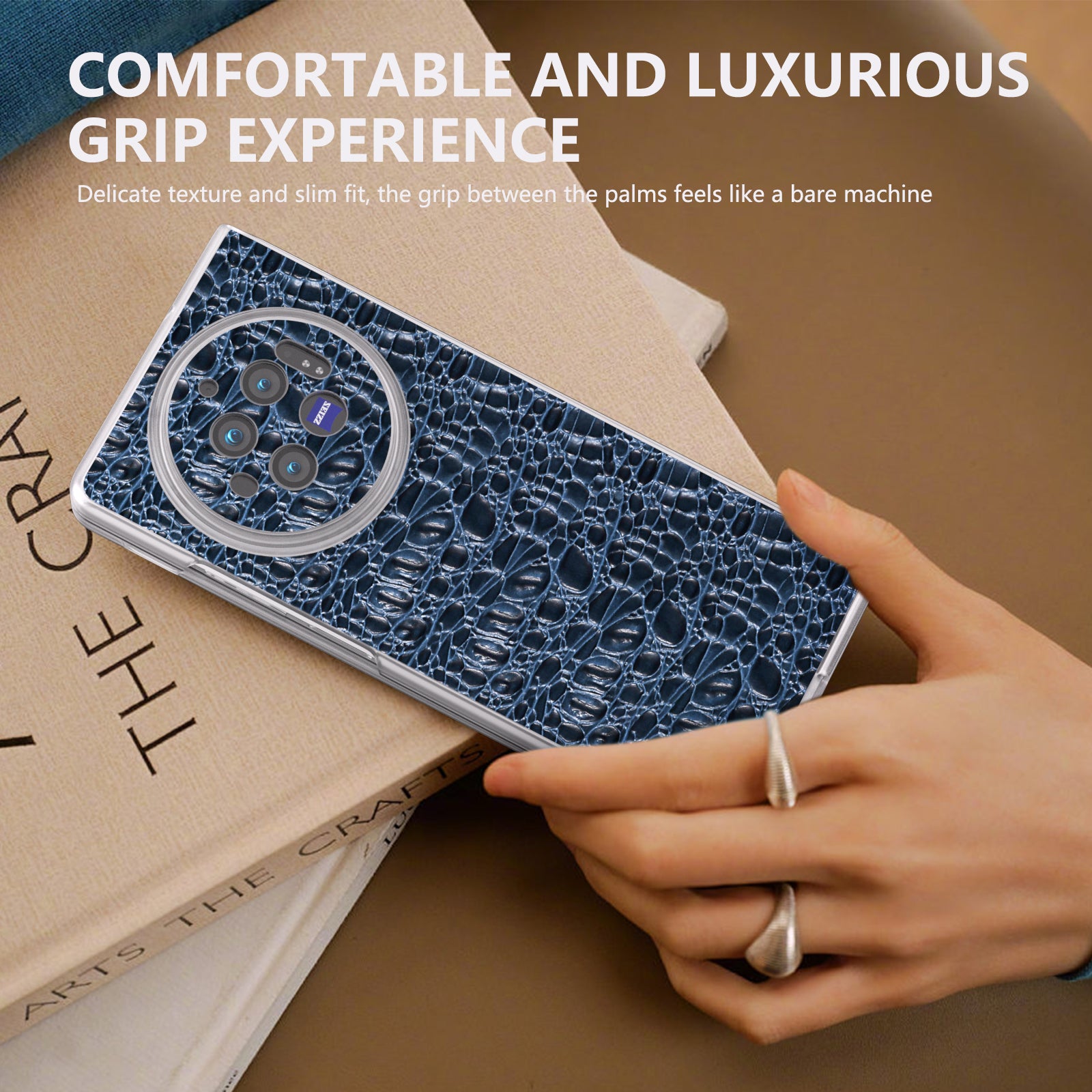 For vivo X Fold3 Case Texture Genuine Cow Leather+PC Phone Cover - Blue