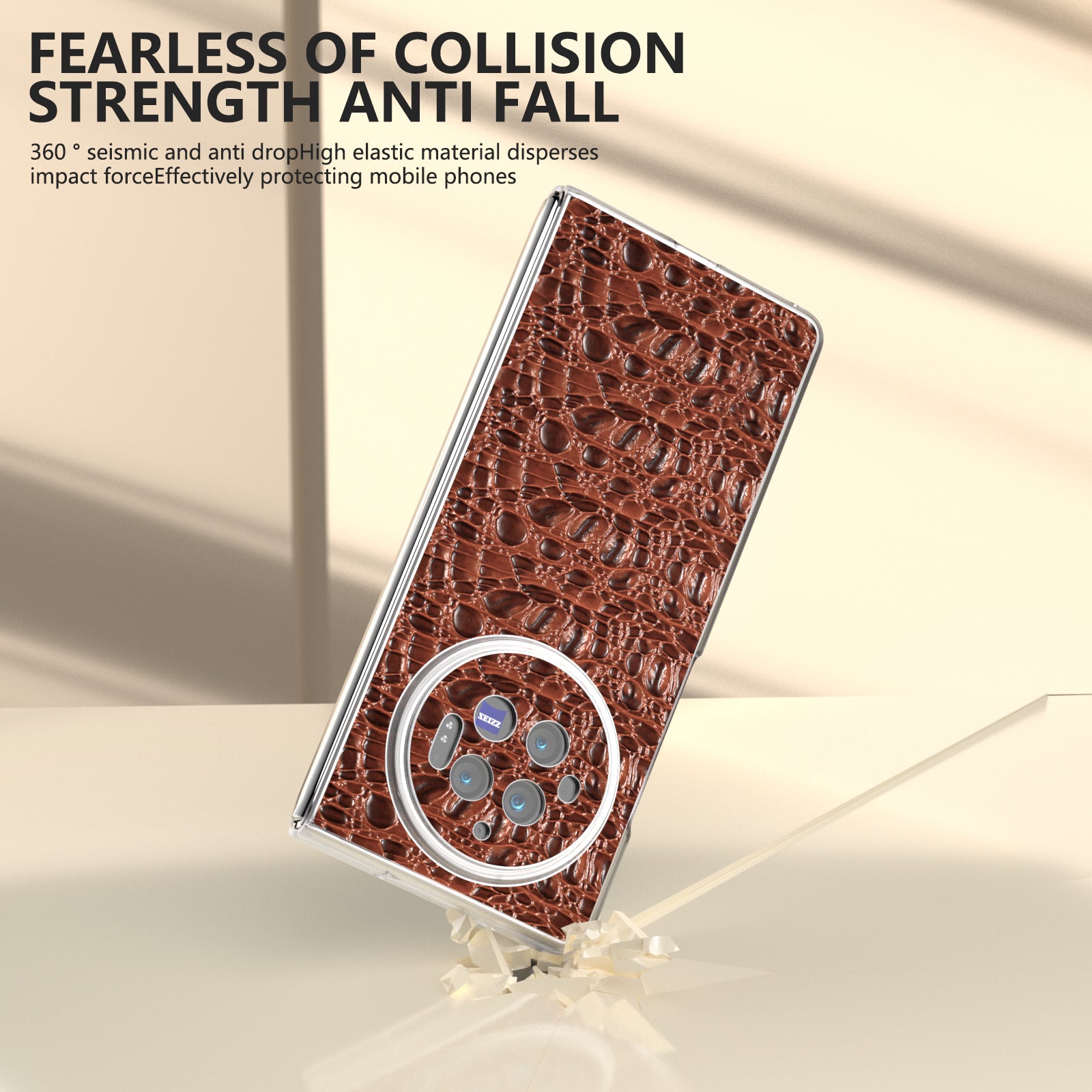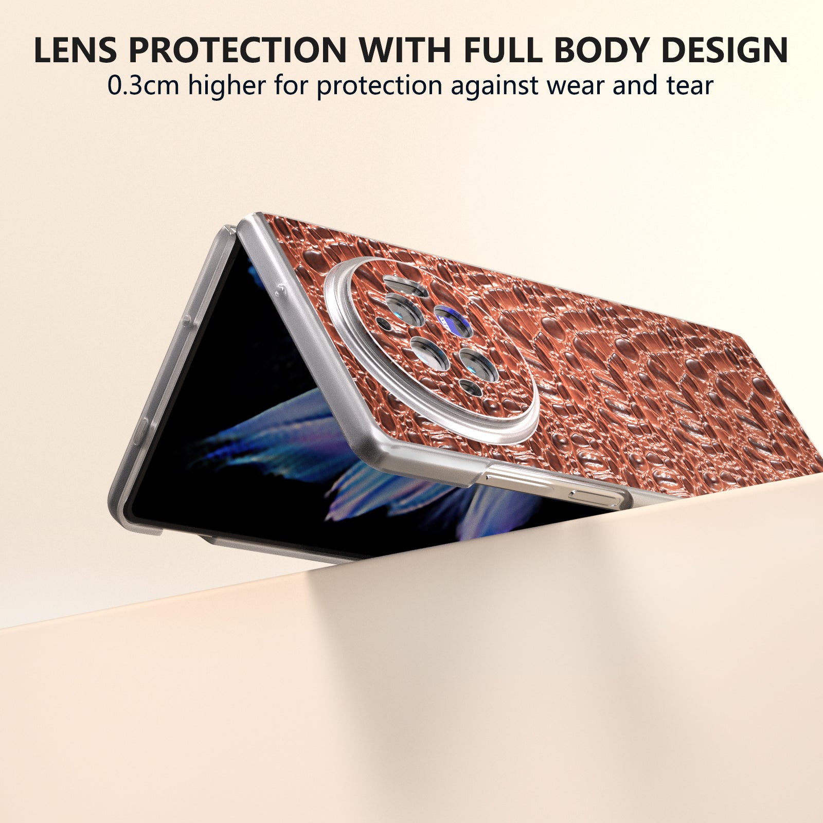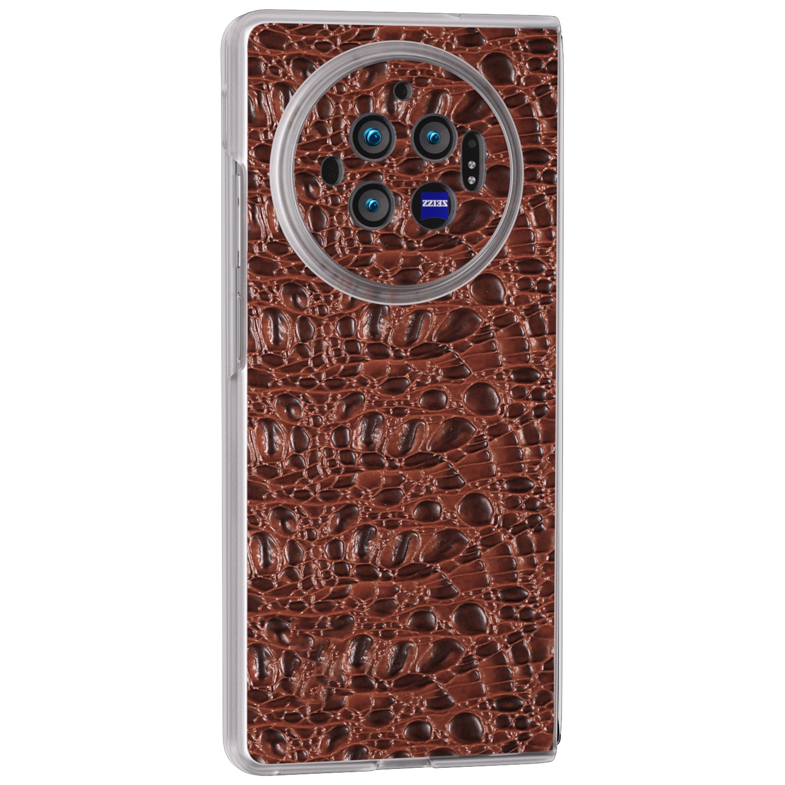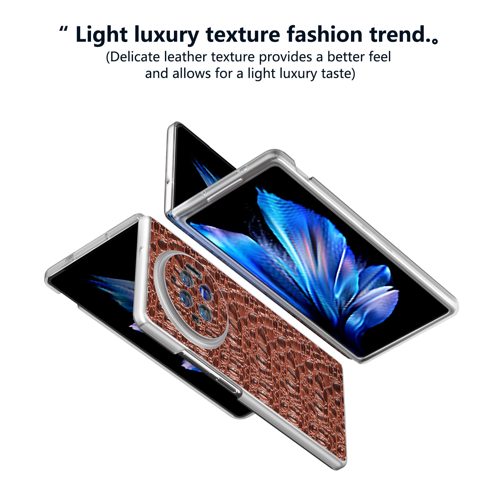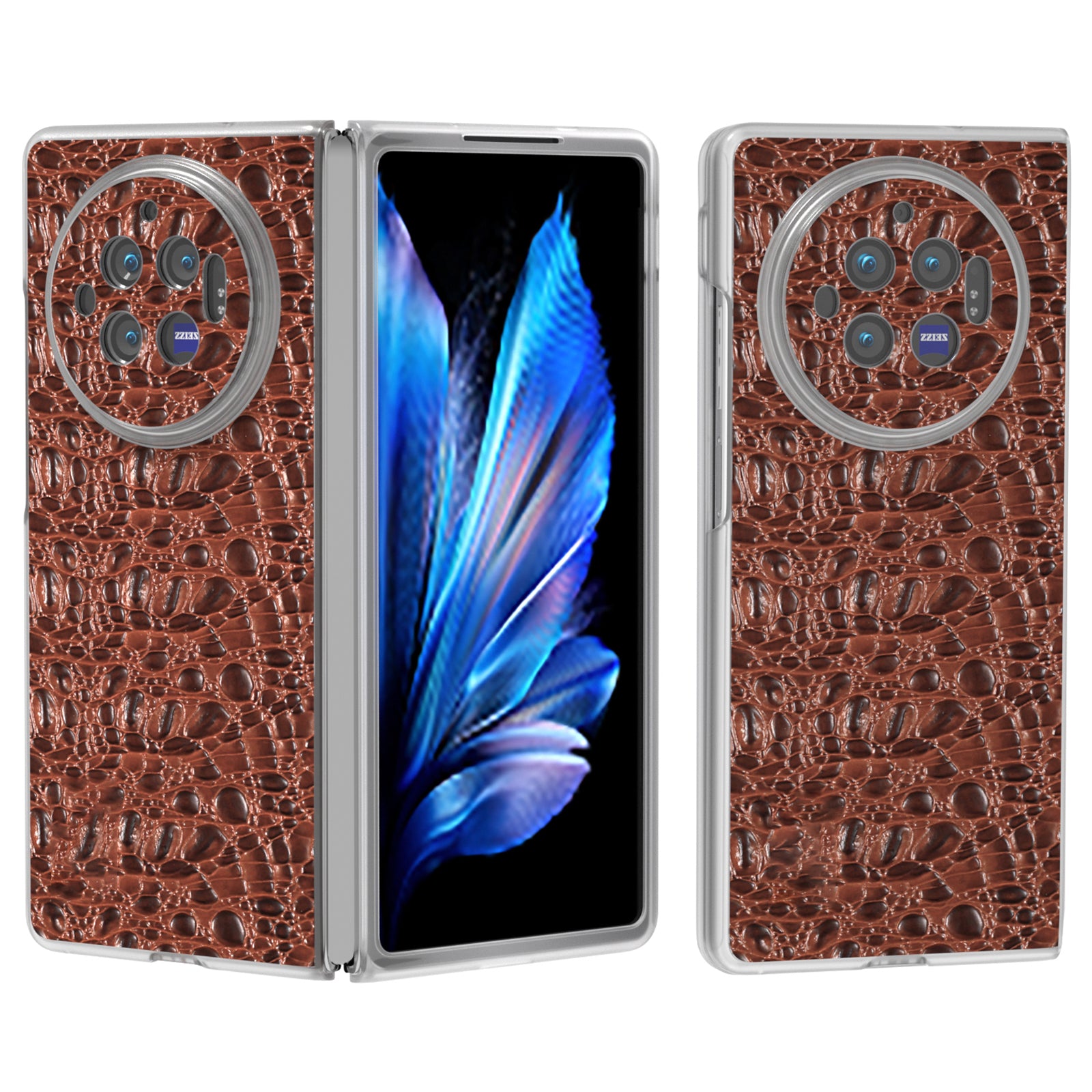 For vivo X Fold3 Case Texture Genuine Cow Leather+PC Phone Cover - Brown
