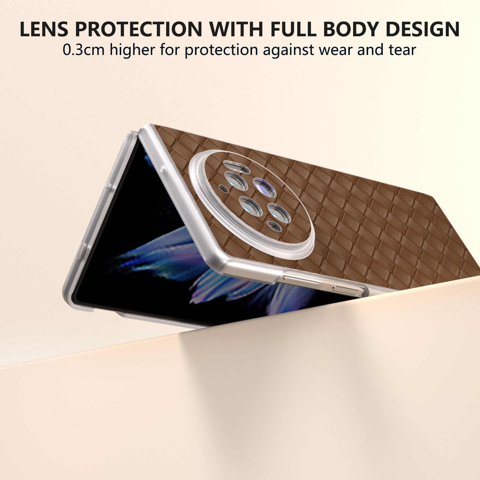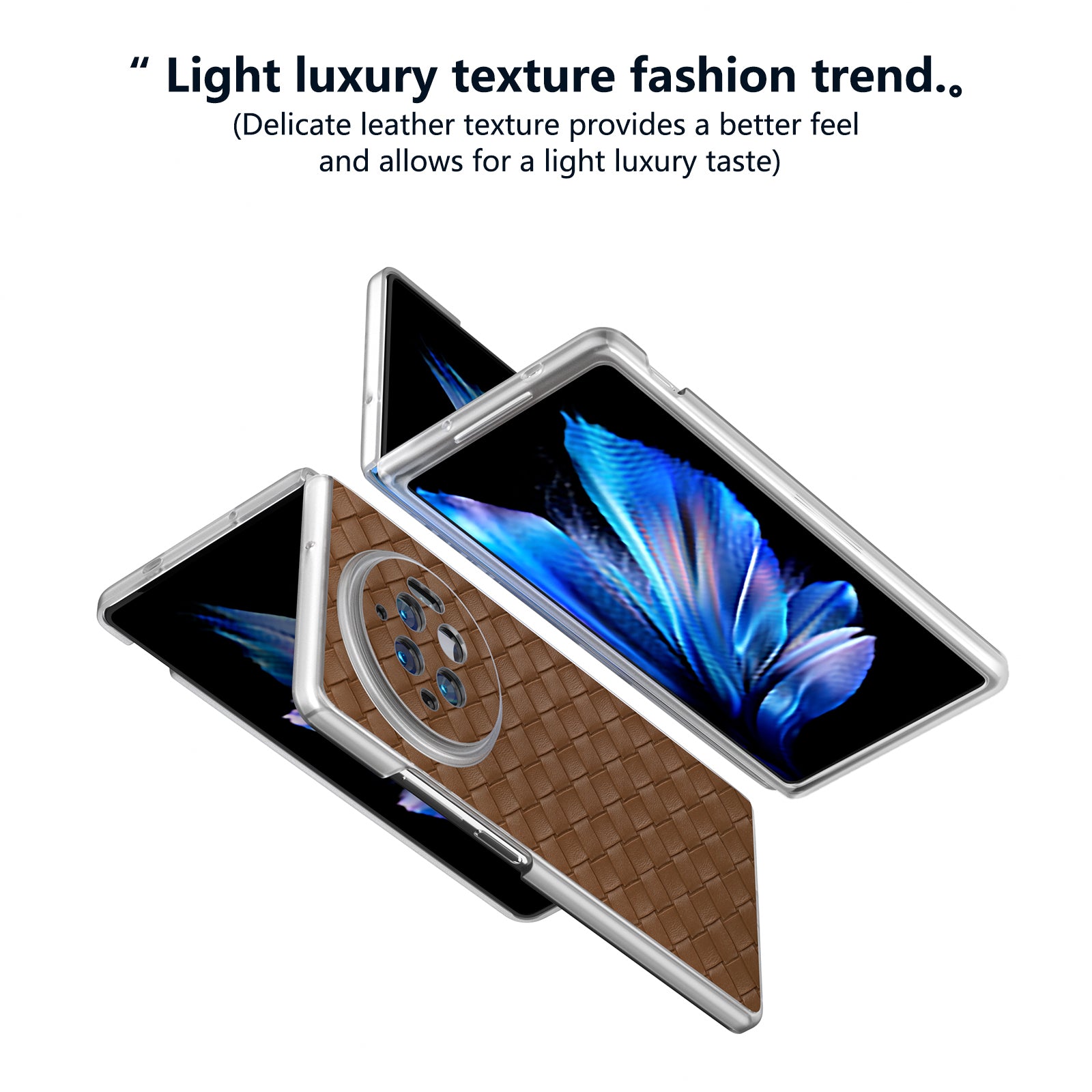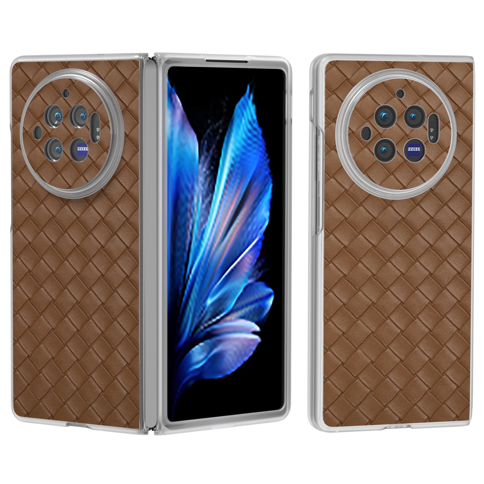 For vivo X Fold3 Case Woven Texture PU Leather Phone Cover with Transparent Matte Frame - Brown