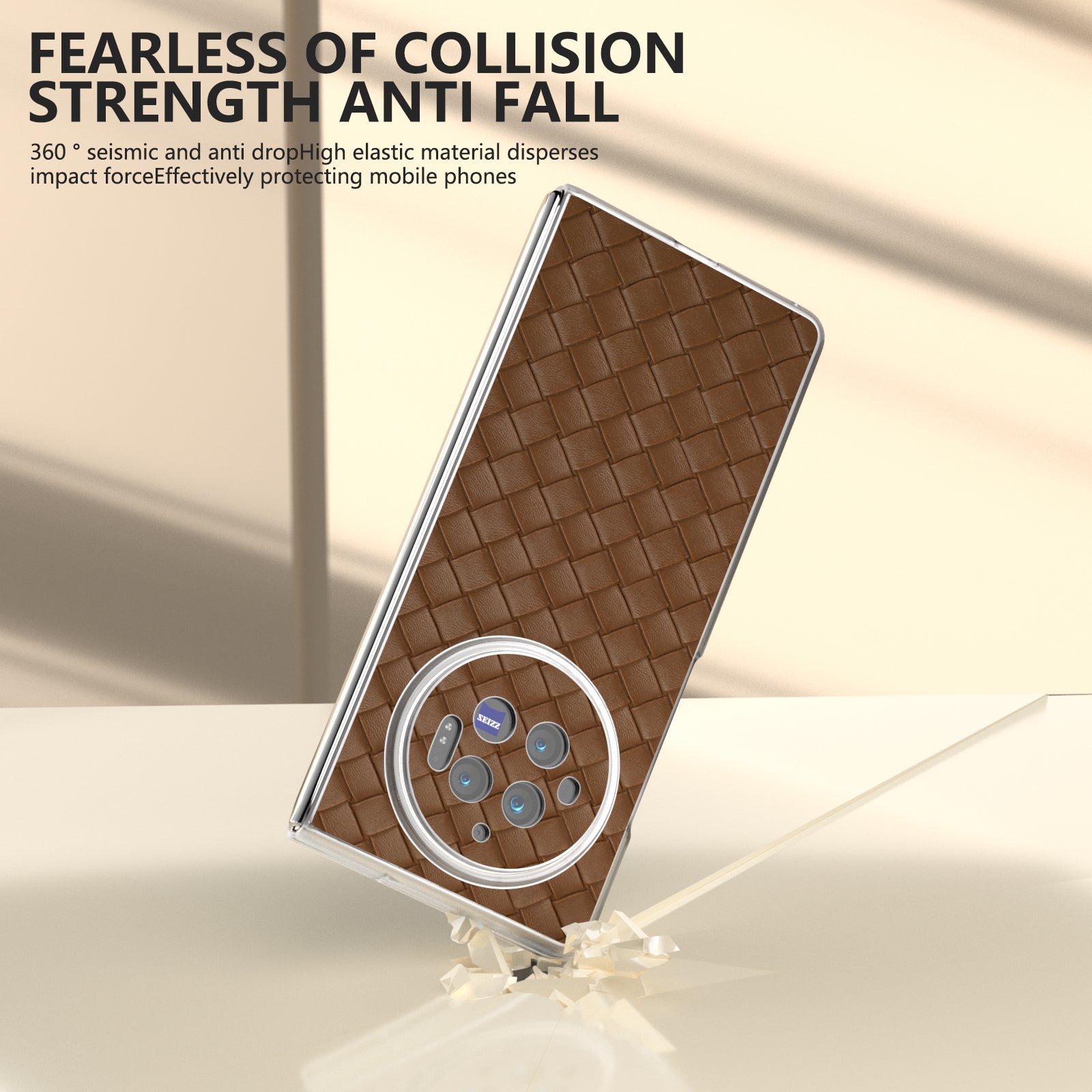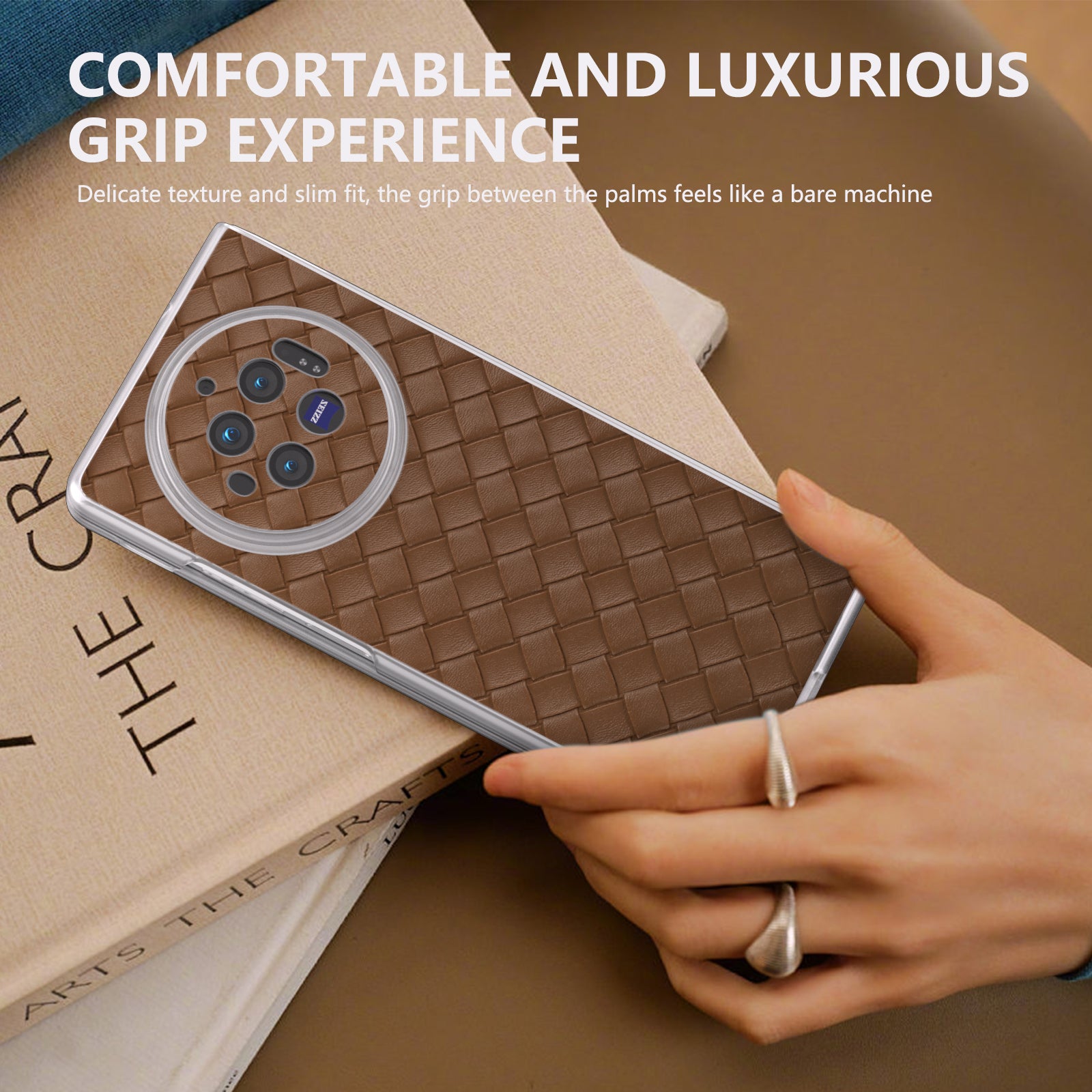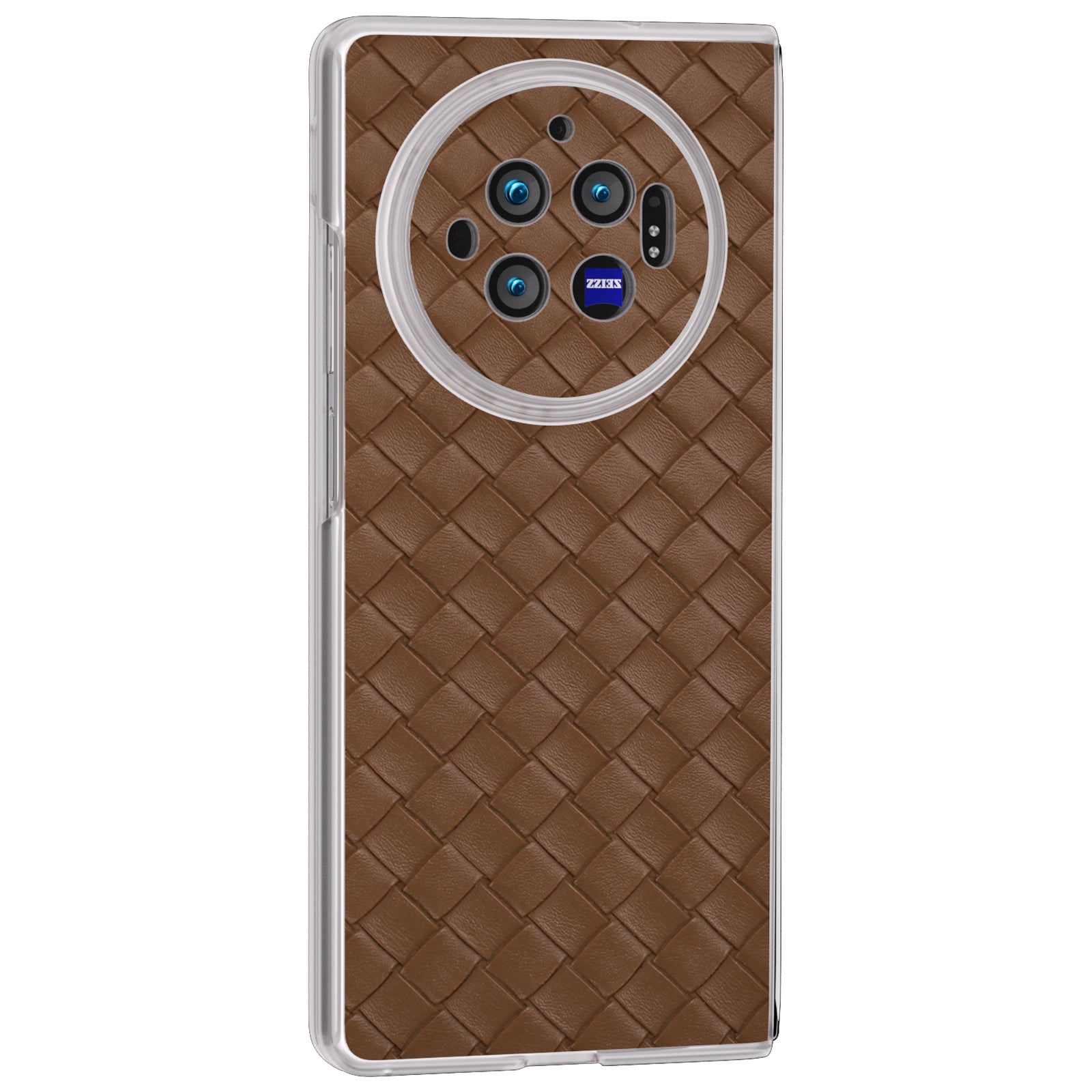 For vivo X Fold3 Case Woven Texture PU Leather Phone Cover with Transparent Matte Frame - Brown