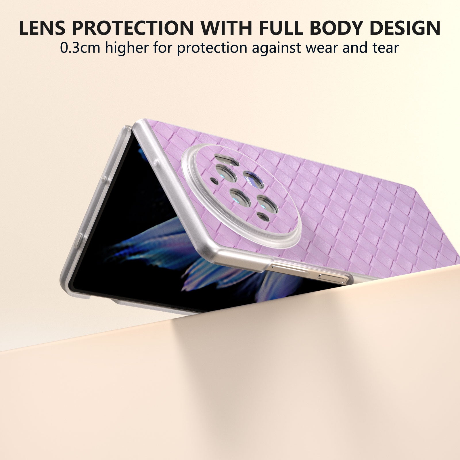 For vivo X Fold3 Case Woven Texture PU Leather Phone Cover with Transparent Matte Frame - Purple