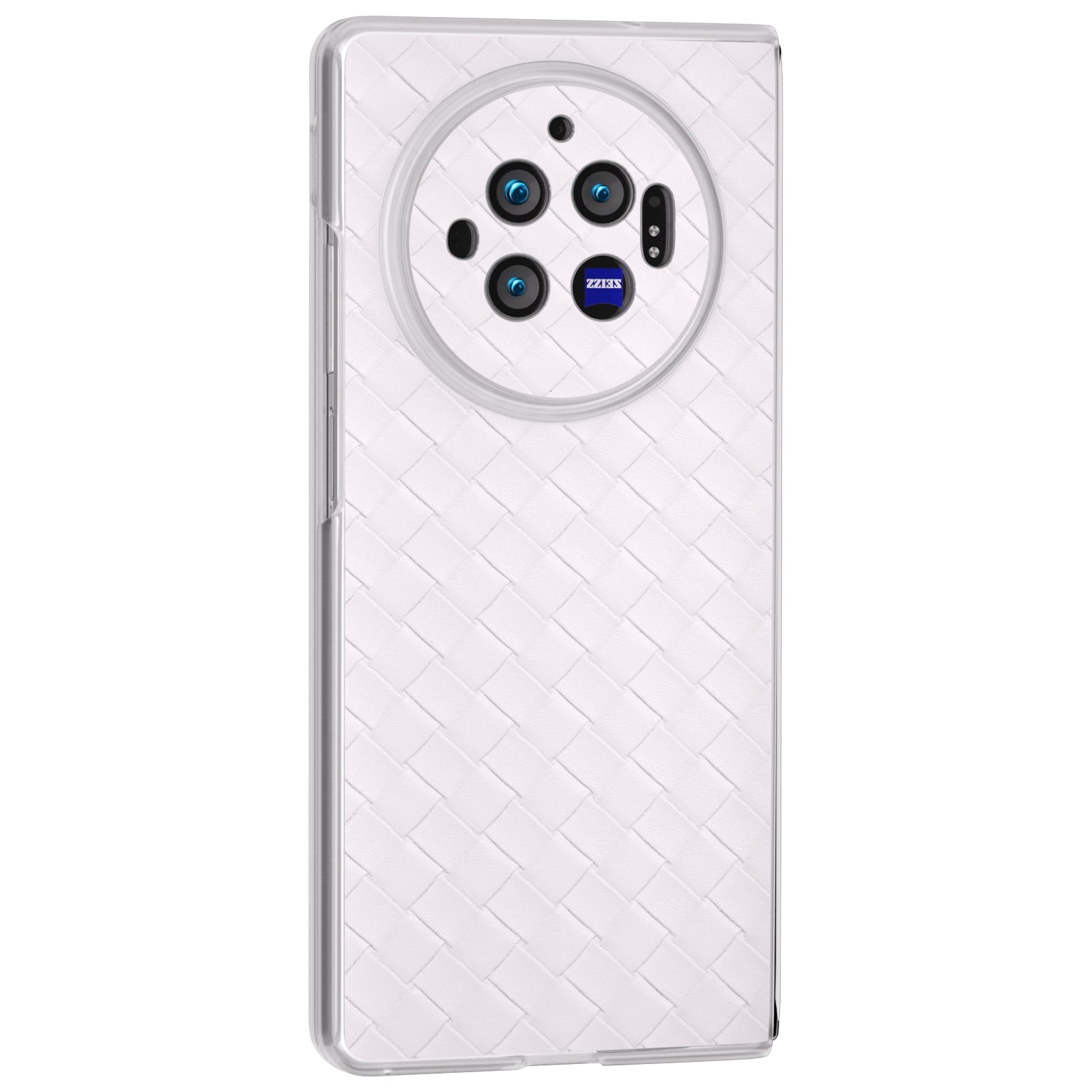 For vivo X Fold3 Case Woven Texture PU Leather Phone Cover with Transparent Matte Frame - White