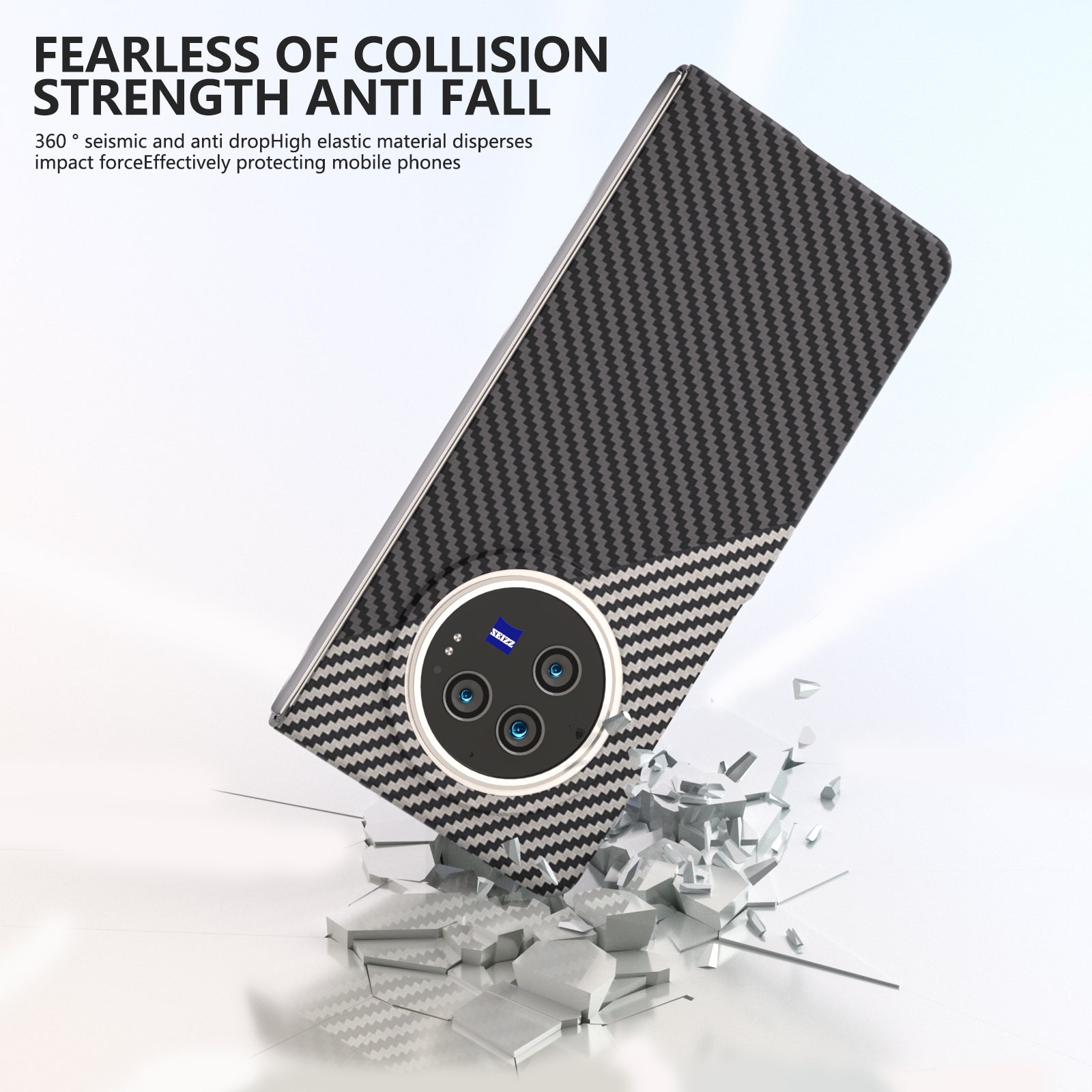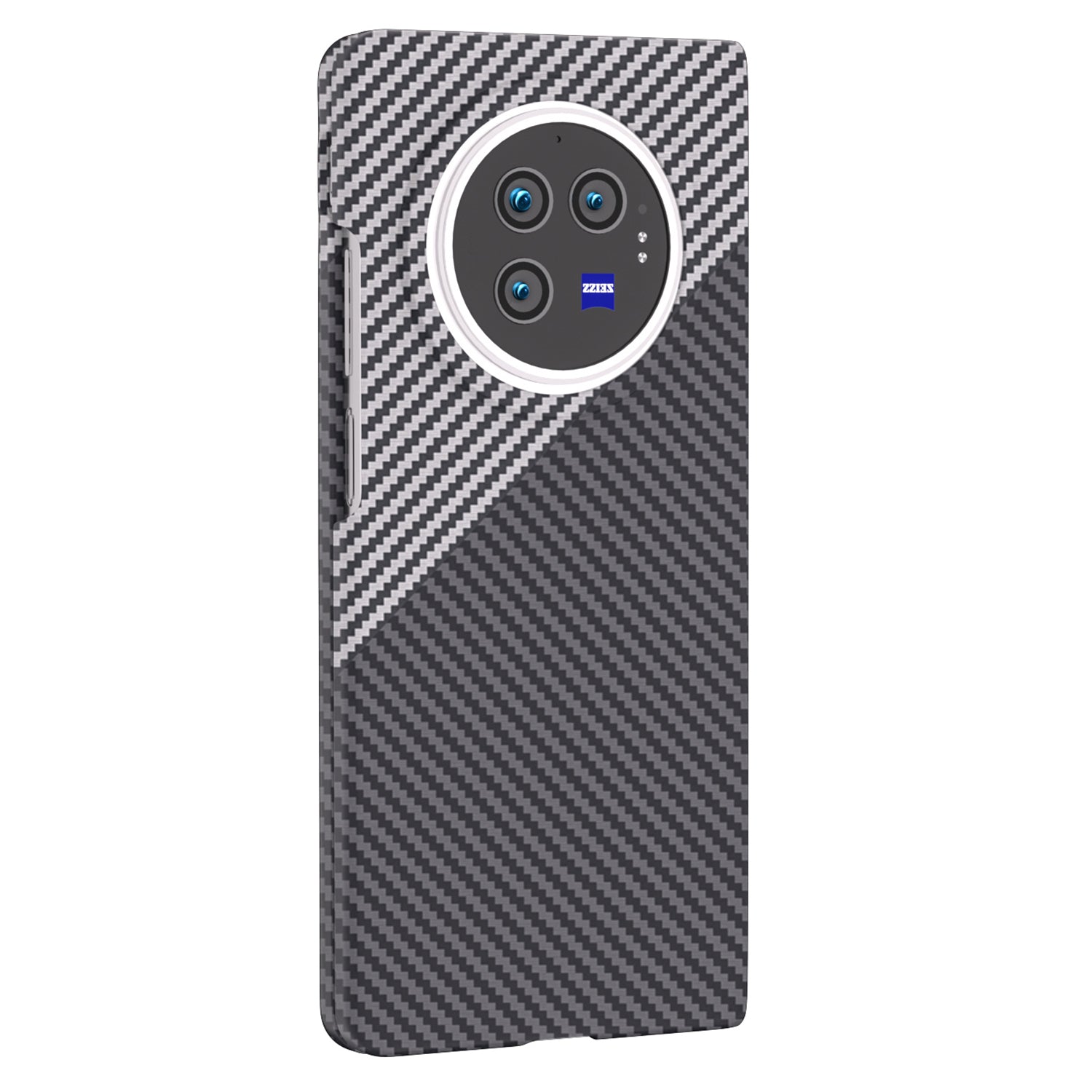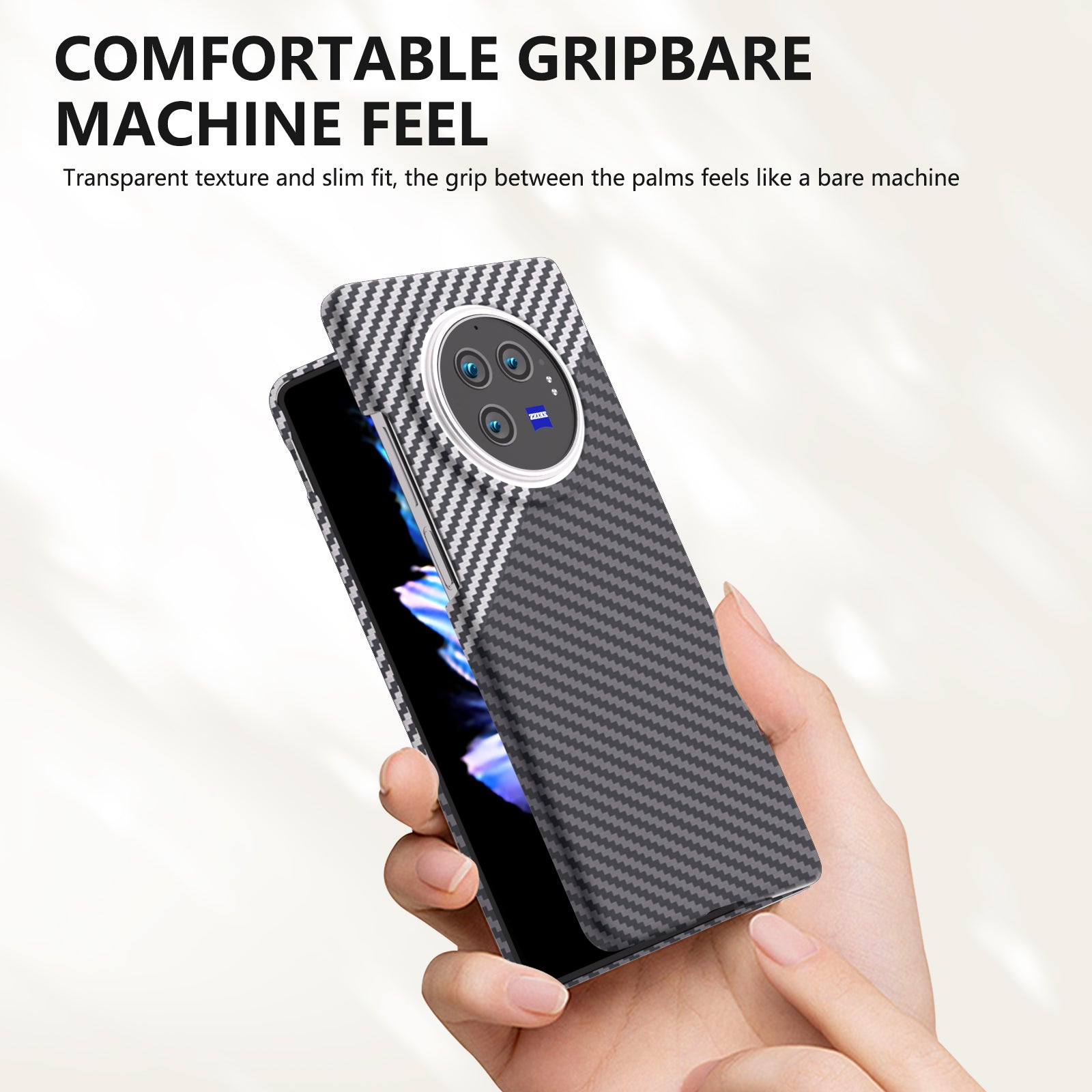 For vivo X Fold3 Shockproof Case Hard PC Carbon Fiber Texture Smart Phone Cover - White+Black
