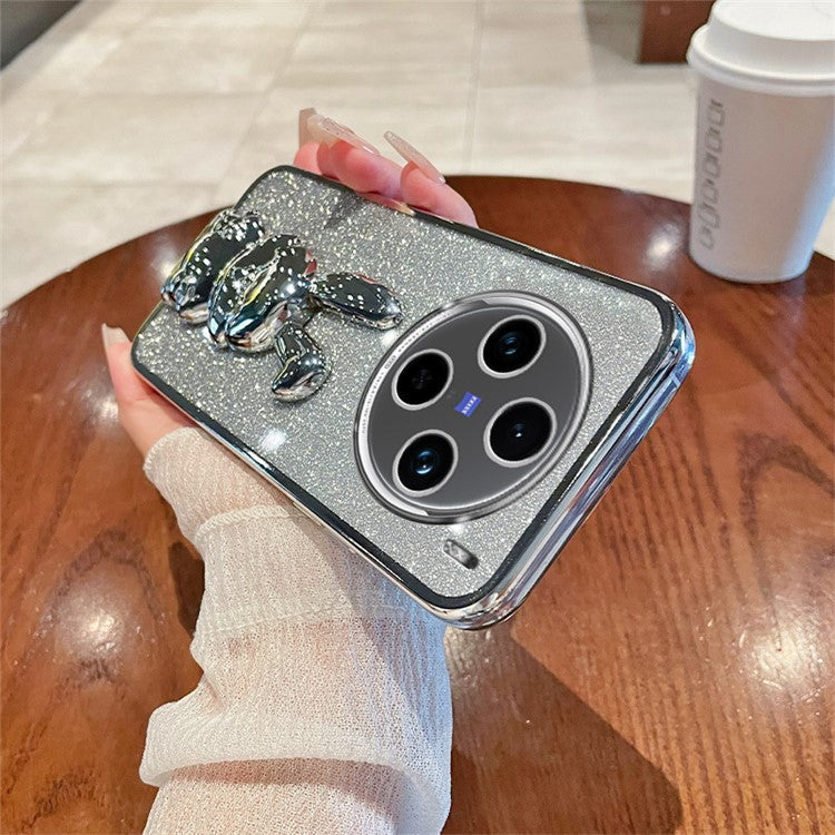 For vivo X100 5G PC+TPU Case Rabbit Design Slim Kickstand Phone Cover - Silver