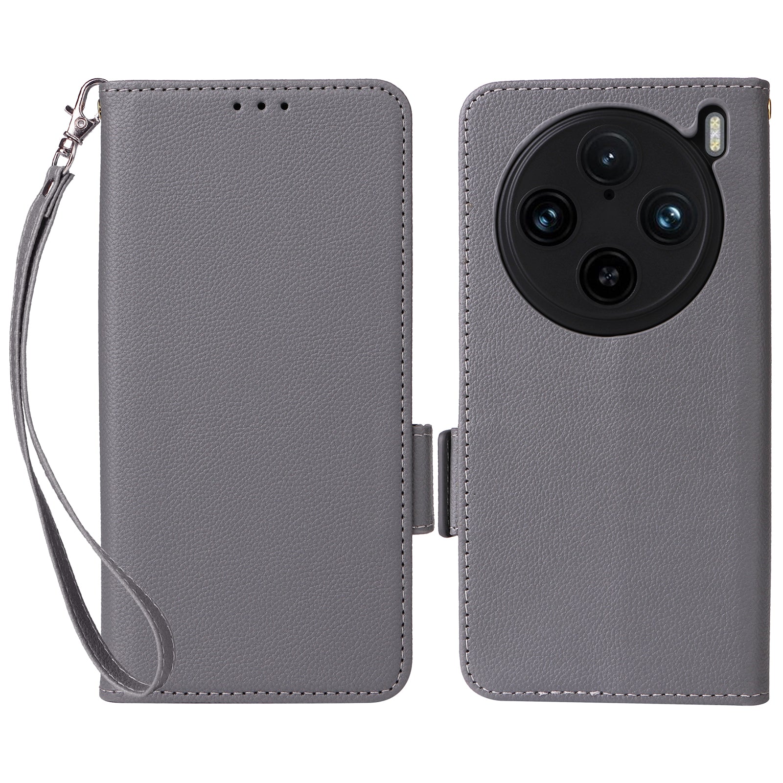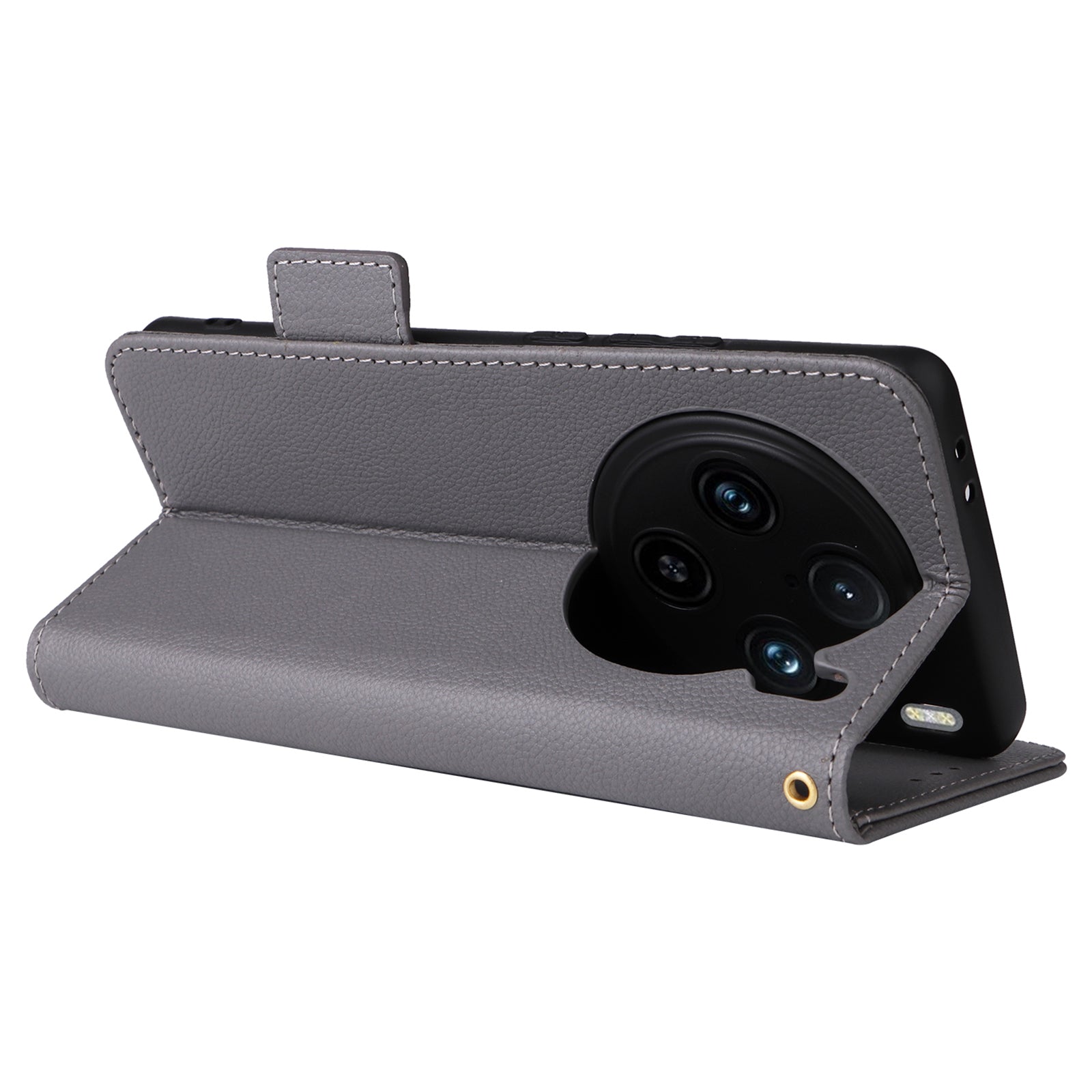 For vivo X100 Pro 5G  Case Card Slots Shockproof Phone Cover with Litchi Texture - Grey